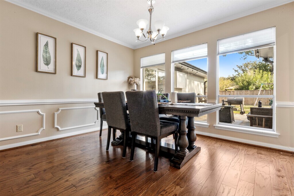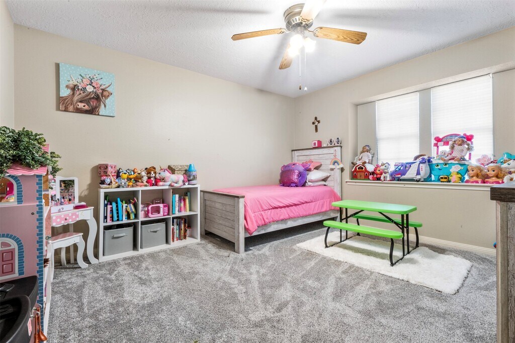 This beautifully remodeled Kustom Kastle,located in a quiet cul-de-sac in Oakbrook West. This spacious 4-bedroom one-story home features a split-bedroom layout,large living area,formal dining room,and a unique carousel breakfast nook. The detached garage adds convenience and curb appeal. The central kitchen shines with granite countertops,white cabinetry,stainless steel appliances,and easy access to a butler’s pantry and oversized utility room. The expansive owner’s suite offers dual closets and a luxurious walk-in shower with bench seating. Flooring includes hardwood in the living,dining,and owner’s suite; tile in kitchen and baths; and upgraded carpet in secondary bedrooms. Close to parks and schools,this custom home blends comfort,style,and location—perfect for your next move. MLS# 52351083