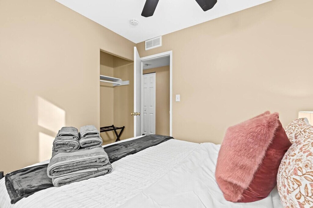Feel at home in this charming home, the perfect place to relax and unwind. This spacious home features three bedrooms and is located in a residential neighborhood. The kitchen is fully equipped with everything you need to cook your favorite meals. Amenities include smart TVs, high-speed Wi-Fi, and a laundry room with a full-sized washer and dryer, as well as an iron and ironing board. The kitchen features a microwave, stove, oven, toaster, coffee maker, refrigerator/freezer, sink, glasses, silverware, and pots and pans. This unit is pet-friendly, and there is a $150 fee per pet. Located in Hazel Park, this home is conveniently located near the 696 expressway, providing quick access to Metro Detroit. Within 15 minutes, you can reach Downtown Detroit, Royal Oak, or Lake St. Clair. Free parking spots are available for two vehicles on the driveway, with additional street parking in front of the house. A Ring doorbell with a camera is installed at the front door for safety, monitoring only the exterior entryway 24/7. There are no cameras inside the property. Quiet hours are from 9 PM to 8 AM daily, and noise complaints will incur a $250 fine. There is a $500 fine for any non-approved pets. Smoking is only allowed outside, and there is a $1000 fine for smoking inside the unit. A $1000 fine will be charged for non approved pets. A $250 fee will be charged if debris is left behind after your stay. An excessive cleaning fee of up to $250 may apply for dirt, mud, or stains on floors/rugs. A $250 fee will be charged if you check out after 11:15 AM. Please do not move furniture (tables, chairs, beds, nightstands, rugs, etc.). There is a $250 fine if furniture is moved from its original position. Includes high-speed Wi-Fi. [SI]