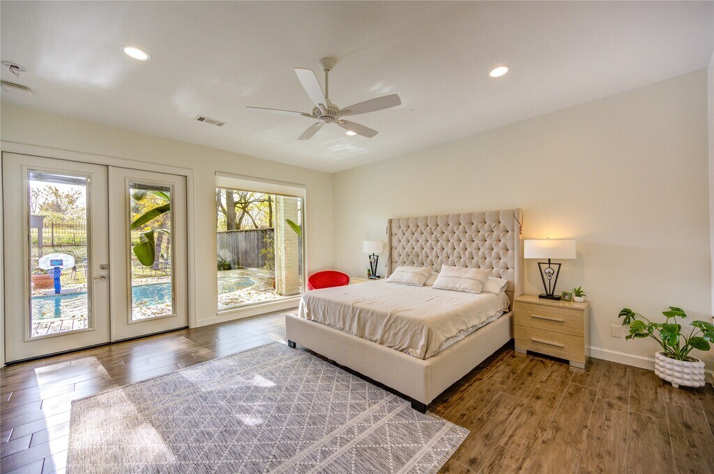 Elegantly renovated 4BR/4.5BA home in the Fleetwood community,the heart of Energy Corridor! This gem has no back neighbors and private access to the most beautiful nature reserve in Houston,Hershey Park,where nature lovers can get away from it all in just a few steps. This two-story home features ultra-high ceilings,abundant natural light,large windows,stylish and functional flooring,and an open layout overlooking a private backyard retreat with sparkling swimming pool and gazebo. The thoughtfully designed kitchen features all modern appliances,including a double oven,large refrigerator,dishwasher,island,and a useful computer nook or work area and tons of smart storage. Master suite downstairs with spacious walk-in closet and luxurious master bath with separate shower and large soaking tub. All bedrooms are oversized for comfort (2 up and 2 down) and each with an adjacent full bathroom. This house has everything you need,so schedule your showing today to your next home! MLS# 65054064