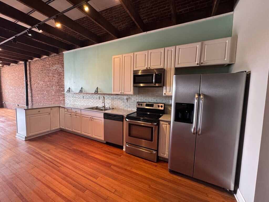 HUGE PENTHOUSE LOFT located in Downtown Lynchburg right on Main St. Fully renovated but with character of historic property. No neighbors on either side, only below. Modern style, exposed brick, wood beams, open kitchen and living rooms. Massive bedrooms each with their own bath and large closet. Central air. Washer and dryer in unit. Full sized kitchen with dish washer. 3 bathrooms, each bedroom has its own. Walk-in closets are huge. Hill City Rentals, Licensed Realtors. Lynchburg, VA. Equal Housing Opportunity. $45 application fee to apply.