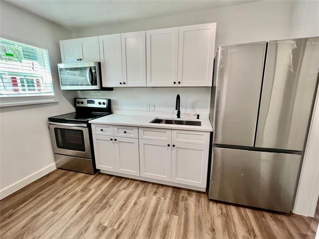 Fully Renovated 2 bedroom, 1 bathroom unit in a quaint triplex. Situated in a convenient neighborhood just minutes to Downtown Fort Worth. Owner pays for water, trash and lawncare. Pet friendly and available for move in early November. Brand new appliances included along with a full-size washer and dryer in unit.