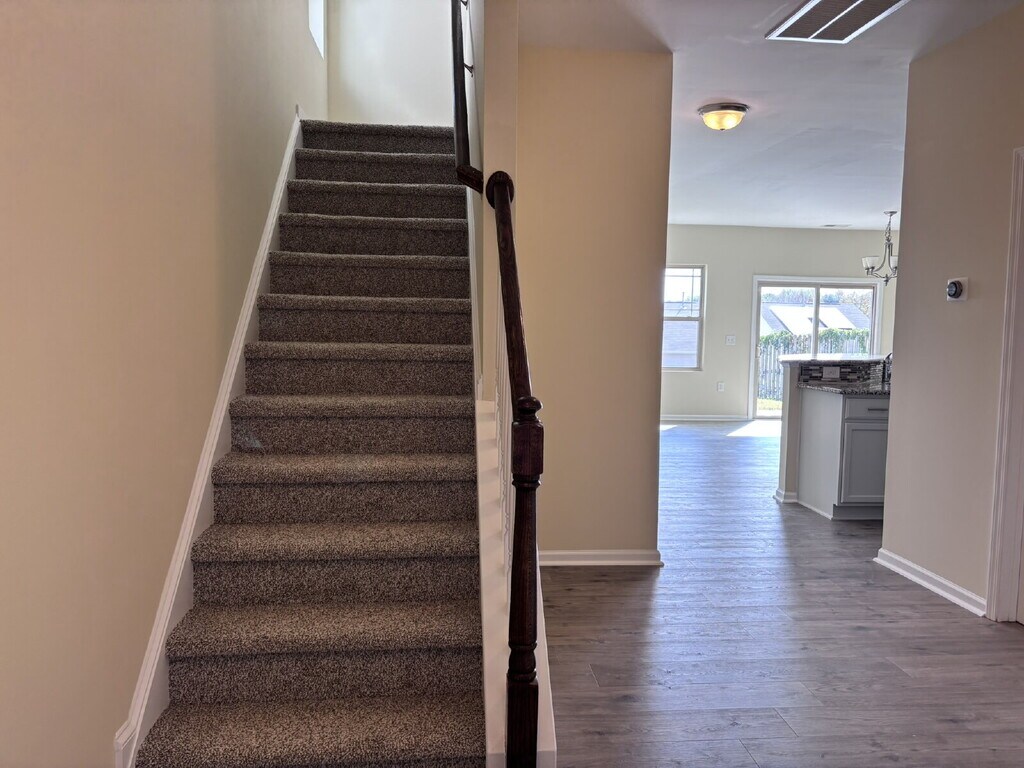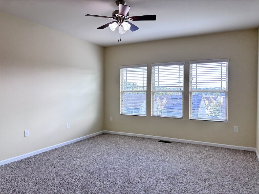 3 bedrooms, 2.5 bath with room to grow. Freshly painted and new carpet in upper level. Spacious living room and dining and open to the kitchen with gas range. Patio door with fenced back yard. Upstairs, bedrooms, loft area to use as an office or play area. Bonus room on third floor, so space for everyone. Available now.