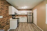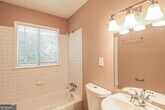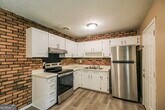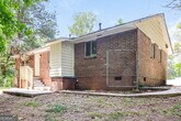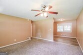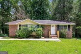 Fall in love with this Jonesboro, Georgia rental home. Step right into the large living room with its ceiling fan/light fixture then proceed to the eat-in kitchen and dining room area. L-shaped to make working easier, the kitchen sports an eye-catching brick-look wall with beautifully contrasting cabinetry, a sleek refrigerator, a double sink, and a door that opens to a small deck and a partially fenced backyard. The main bedroom has an en-suite bathroom with a walk-in shower installed in its own bump out, and the other bathroom features an attractive pedestal sink. The laundry room is tucked conveniently between the bathrooms.