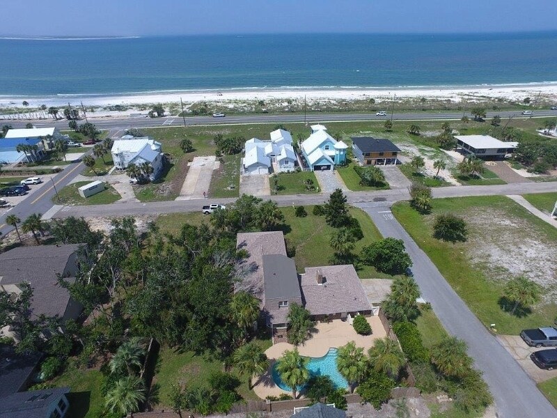 Property Id: 59841 GULF AIRE, PORT ST JOE - ST JOE Beach: Charming four-bedroom brick home with private pool on a huge corner lot with a view of the Gulf of Mexico. The stately entry foyer has a graceful open stairway leading to the loft, a perfect space for office or playroom, with sliding glass doors opening onto the Juliet balcony with a view of the Gulf of Mexico. A separate bedroom on this level overlooks the pool. On the first floor there are three more bedrooms and 2 1/2 baths. This house will lend itself to some serious entertaining in the spacious living/dining room, huge kitchen, and family room with gas fireplace. Sliding glass doors open onto a huge fenced entertaining area with inviting in ground pool. The home is first tier, only a few minute's walk to the PRIVATE sugar-white beach of the welcoming Gulf Aire community which also offers a large pool, tennis courts, and playground. Don’t wait! Rental homes are scarce in this exclusive community! This should be your next home!