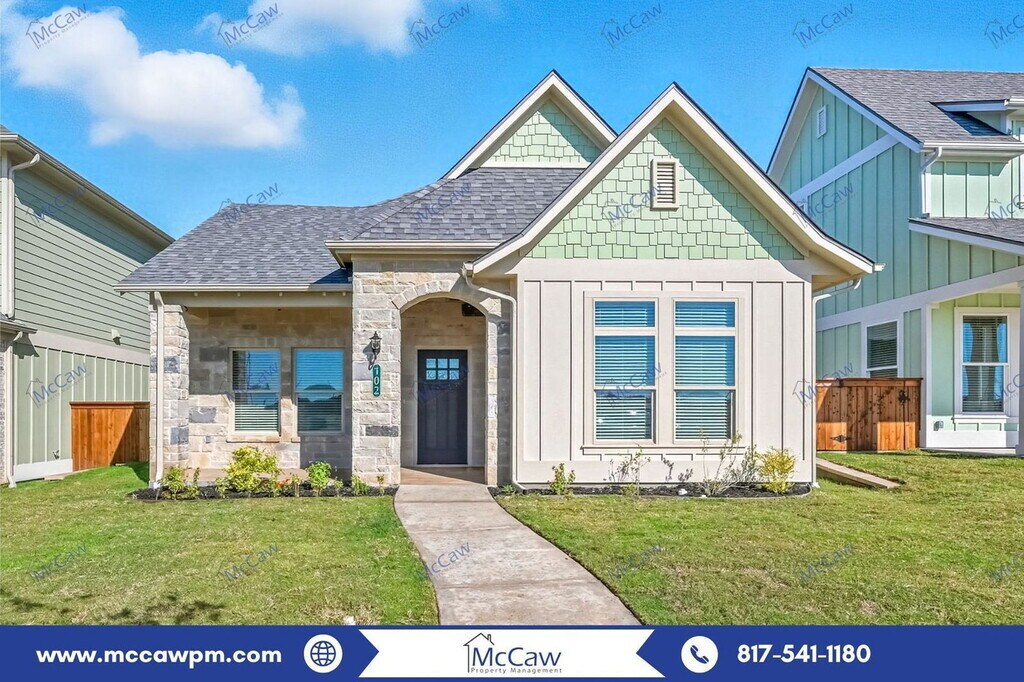 Experience luxury living combined with relaxing Granbury lifestyle. This home is a part of a special new construction lease neighborhood that gives a nod to the history of Granbury real estate. The homes have a "Period Home Design with State of the Art Finishes". The unique architecture of the neighborhood is designed by a national award-winning architect who highlights the real estate styles of Coastal Farmhouse, Granbury Stone Traditional, 1940's Brick Ranch, and 1920's Craftsman styles. This home was designed with the "Granbury Stone Traditional" flair in mind. The home boasts 2 spacious bedrooms and 2 well-appointed bathrooms. It is designed with high efficiency in mind, featuring Pella windows and foam insulation to ensure optimal energy savings. The kitchen is a chef's dream with an appliance package, soft close cabinets, and a premium deep sink. The rear entry garage and extra parking add an extra layer of privacy and convenience. Step outside to your private turf courtyard, a perfect oasis for relaxation. The property also includes professional landscaping, with outdoor water and maintenance covered, allowing you to enjoy the beauty without the hassle. This turnkey property offers 'lock and leave' living, ideal for those with a busy lifestyle. Nestled in a walkable neighborhood, you can enjoy leisurely strolls right from your front porch. Situated in central Granbury this home is walking distance to the popular HEB and Kroger grocery stores. Experience luxury living at its finest, the simplicity of low maintenance, and an of unapparelled sense of community. Please visit our website at to apply for this property or to view our rental qualifications. Upon approval of an application, an admin fee of $250 will be due with the security deposit. There is a $65 application fee, per person, over the age of 18. To schedule a showing, please text Diana at or email . Please do not schedule through ShowingTime or BrokerBay as we do not use that process. You can schedule a showing on our website -> -> Available homes -> Homes for Rent Pets welcome with prior approval, deposit & pet monthly rent! By submitting your information on this page you consent to being contacted by the Property Manager and RentEngine via SMS, phone, or email.