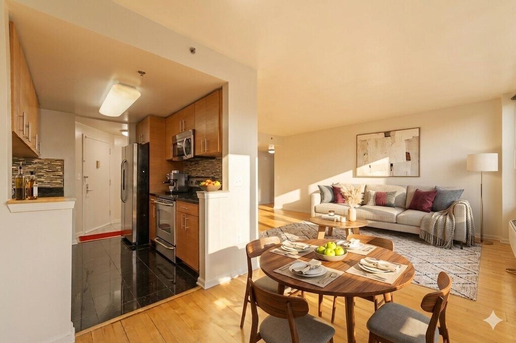 This sun-drenched, south-facing 2-bedroom home offers a spacious layout filled with natural light throughout the day. The home features an in-unit washer and dryer, along with generous closet space throughout. Situated in one of Jersey City’s most desirable locations, you’ll enjoy unmatched convenience right at your doorstep—just steps from the Grove Street PATH station, farmers markets, Whole Foods, and an array of restaurants, cafés, parks, and shops that Downtown Jersey City has to offer. Grove Pointe is a full-service boutique building with only 67 residences. Amenities include a rooftop pool with sun deck, resident lounge with pool table, club room, fitness center, children’s play area, and 24/7 concierge service. A Starbucks is conveniently located on-site, and garage parking is available in the building for a monthly fee.
