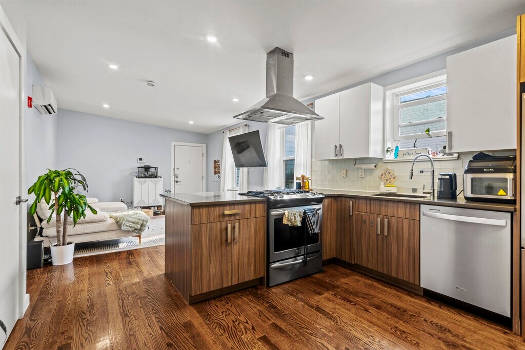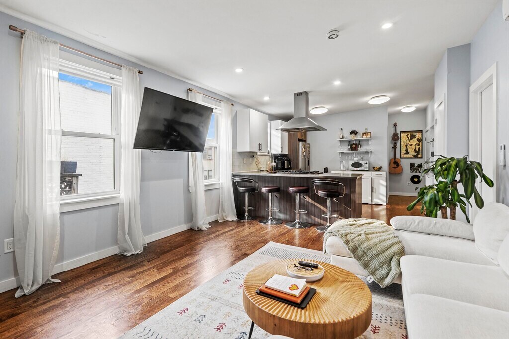 LEASING INCENTIVE PROVIDED BY LANDLORD. Stunning sun-drenched top-floor retreat—this modern haven features two bedrooms, one full bath, and sleek hardwood floors throughout. Enjoy the convenience of central air and washer/dryer, and entertain effortlessly around the stainless steel appliances, stone countertops, and peninsula breakfast bar. Located just a 10-minute stroll to Grove Street PATH Station and within easy walking distance of delis and local shops, this home combines comfort, convenience, and style in one remarkable package. A blend of refined amenities and thoughtful enhancements sets this unit above and beyond—schedule your tour today and experience it firsthand!