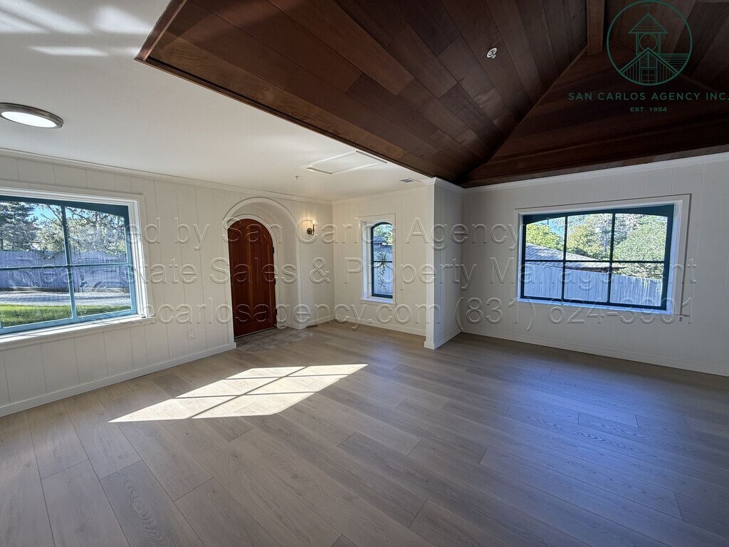(KEIG3 I/O) San Carlos Agency, Inc. offers this newly remodeled, high end and unbelievably charming two bedroom, two full bath single family home in the perfect Carmel Highlands location just minutes to town and adjacent to the General Store. The property is sited on a spacious and private lot set back from Highway 1 with a large driveway, three-car garage, multiple formal entries, multiple decks and overall incredible livability. The interior of the home features extremely high end finishes throughout including new paint, fixtures, and flooring. The kitchen has new counters with back splash, new stainless steel appliances including a gas range with vent hood, refrigerator (freezer drawer), dishwasher, and garbage disposal. The living room has high, open beam ceilings and a wood burning fireplace. Through the corridor off the living room (washer/dryer left as a courtesy to tenant) and up a few stairs is the spacious primary wing with large bath (separate tub and shower), walk-in closet, high ceilings with skylights, and exits to a gorgeous deck with custom wood railings. The guest bed is off the living area and also exits to a lovely brick patio, as well as offering a newly remodeled en-suite bath with walk-in shower. There is a three car attached garage accessible from the long, gorgeous paver driveway. Tenant pays all standard utilities. Spectrum high-speed Internet service. Pet negotiable. No smoking. Contact San Carlos Agency at or to schedule a showing. Visit or