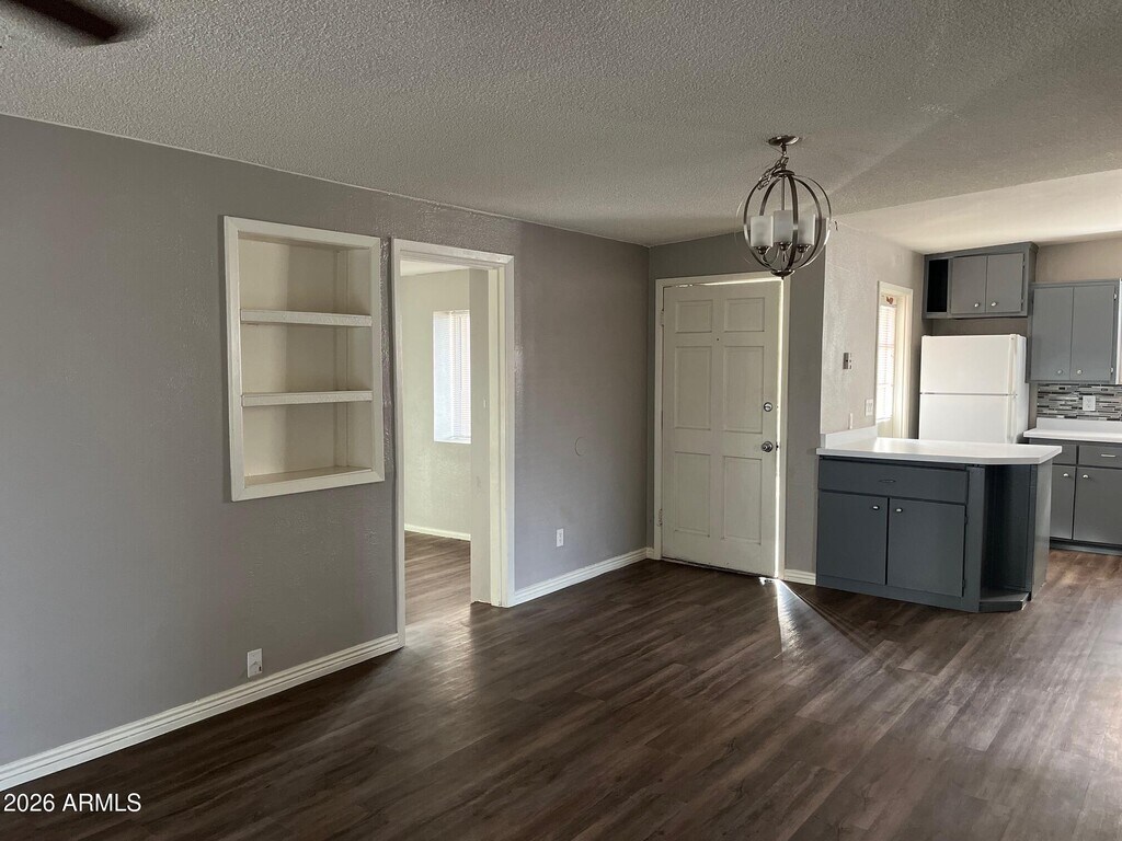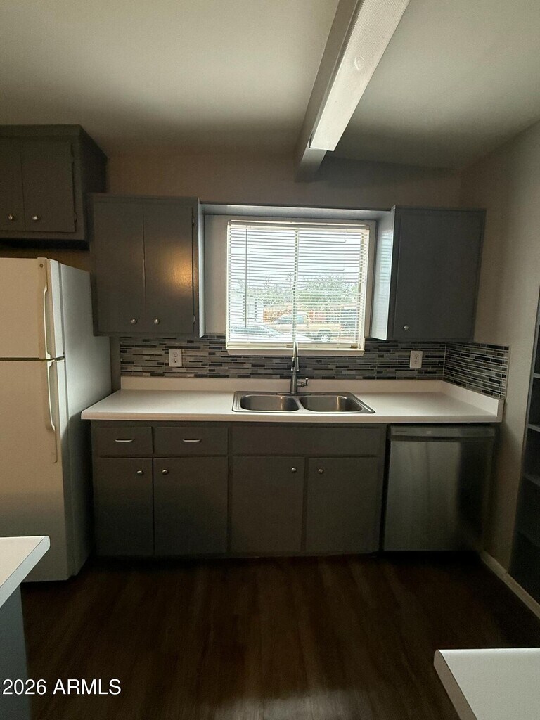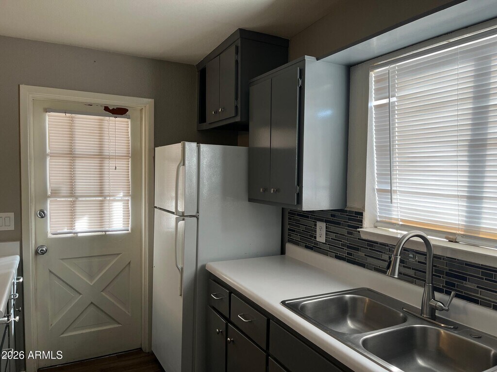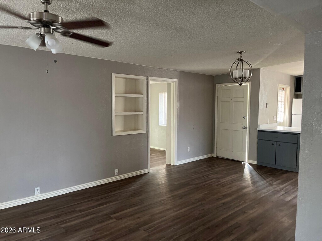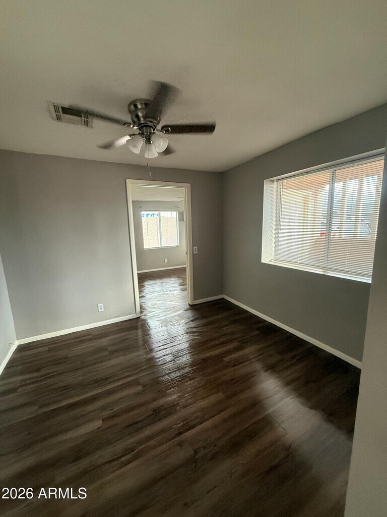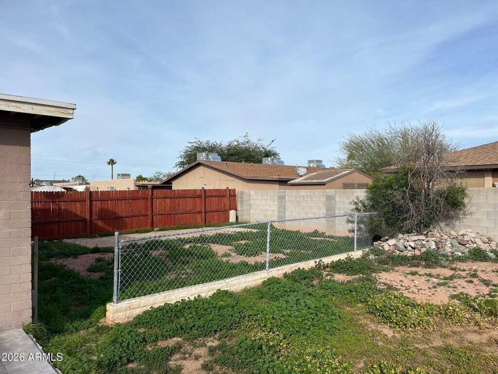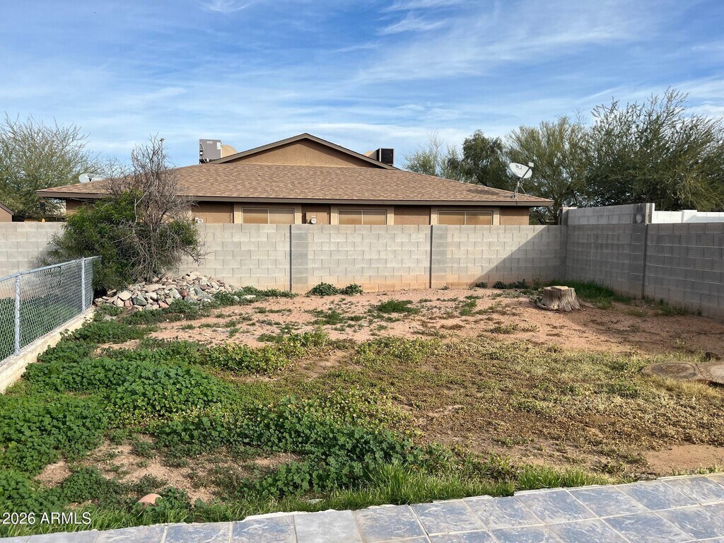 NO HOA Charming ground level 3bd/2ba home featuring split floor plan with spacious living areas,office,ceiling fans,full-size washer/dryer hookups,and large fenced yard with no HOA . This home has no carpet,updated cabinets,RV Gate and is just blocks away from Hohokam stadium and spring training,Close to schools,shopping and I-10,and hiway 60.