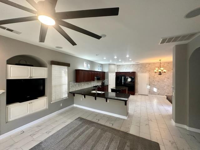 Simply exquisite is the best way to describe this home. Located in Buchanan Estates, this home sits on an oversized lot and has all the amenities to be an entertainers dream. Full solar with no monthly bills. Just a once a year true up. Huge kitchen opens up to family room. Stainless appliances, a large island, and tons of counter space make the kitch a chefs delight. Also has a separate living room with hardwood floors. Comes with 2 big screen TV's and washer/dryer/fridge. Master bedroom is huge with adjoining en suite bathroom. Large walk in closet, double sinks, separate tub and shower as well. Bedrooms are all large and there is also an office with built in bookshelves and desk. Beautiful flooring throughout. 2 water heaters, water softener system, ring doorbells, and many more upgrades. Outside is even more amazing. Walk in to your own private courtyard out front with lush landscaping. In the backyard, we have a huge pool with fountains, built in jacuzzi, and a huge outdoor kitchen area. Did I mention the outdoor pool house with full bath/shower and its own instant water heater and a synthetic putting green. Attached 3 car garage and potential RV parking. This is a house for discerning tenants looking for the best Clovis has to offer. All within CUSD and walking distance to schools. Please read lease requirements. Highly qualified prospects only need apply