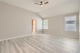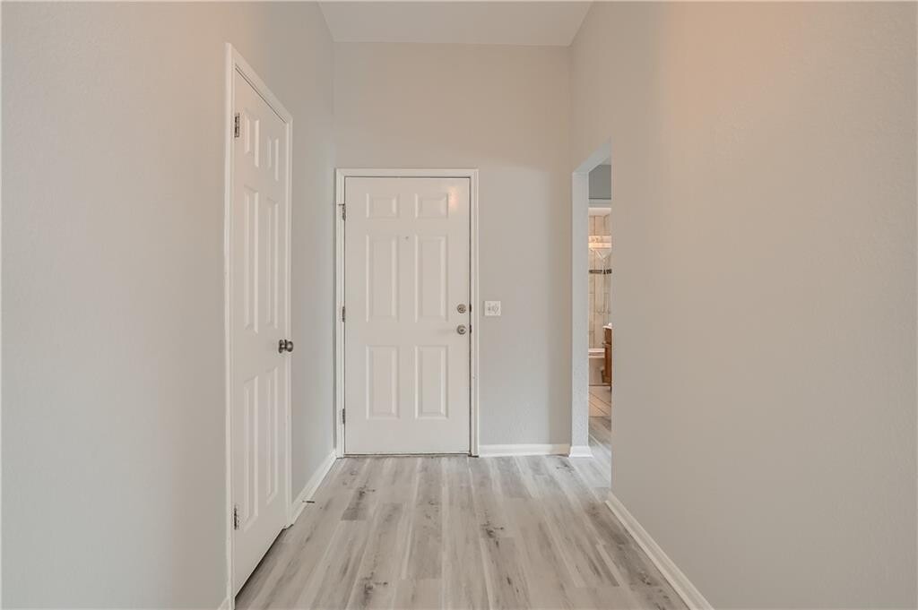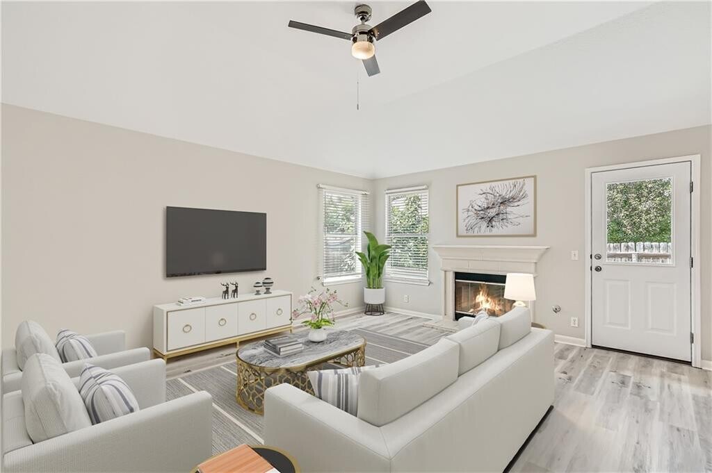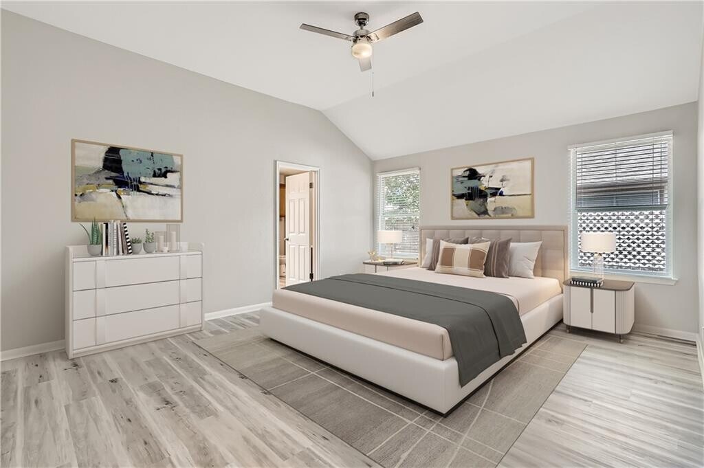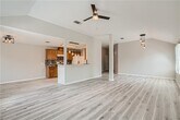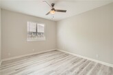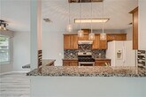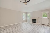 Spacious one story open floorplan home with high ceilings to make it look even bigger! All LVP and tile, no carpet anywhere! Approach to a designer tile entry at the front porch. Admire the designer matte black light fixtures throughout, along with ceiling fans in almost every room. Granite counters and tile backsplash in kitchen with newer stainless gas stove and pullout sink faucet. Refrigerator and washer & dryer provided for your convenience! Kitchen is open to the large living space featuring two dining areas (breakfast and formal) plus a comfy living area with a gas fireplace. Upgraded back door to the private backyard with an oversize patio and plenty of room to relax, dine, run, garden, and play. Fantastic mother in law floorplan with primary suite and one bedroom on one side of the house, 2 bedrooms and the hall bath on the other side. Oversize primary suite with high ceilings and great light, lots of room for king size bed and more! The primary bath is also a great size with double vanities with new faucets, a soaking tub, separate shower with new double showerhead, and a large walk in closet. Convenient indoor laundry room near the primary bedroom with nice washer and dryer set provided! On the other side of the house you'll find 2 more bedrooms, both with new ceiling fans, and a nice hall bath that has a tile shower with decorative accents and niche, euro glass shower door. Four true bedrooms to choose from! Quiet circle drive location in fabulous friendly neighborhood. Pet friendly and ready for immediate move in!