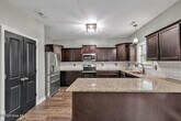 Spacious 6-Bedroom Rental with Dual Owner's Suites & Solar Panels!Welcome to this incredibly customized 6 bedrooms, 4 full bathrooms home. This home features two master bedroom suites - perfect for families needing extra space or multi-generational living. The open-concept floor plan is warm, inviting, and filled with natural light. The living room features a wood-burning fireplace, custom natural wood plank accent walls, and seamless LVP flooring that flows into the dining room, kitchen, and laundry area, with washer and dryer included. The kitchen is designed for entertaining and everyday convenience, with granite countertops, subway tile backsplash, stainless steel appliances, built-in counter seating, and a large pantry. The first-floor owner's retreat is a true sanctuary with dual sinks, a large tiled walk-in shower with dual shower heads, private commode, and a spacious walk-in closet updated with a custom organization system. There are two additional bedrooms downstairs as well. Upstairs, you'll find an additional master with its own full bath as well as two additional bedroom/office/flex rooms and an additional full hall bathroom. This home offers flexibility for guests, family, or home office needs. Outside, enjoy a large fully fenced backyard with a built-in basketball goal. Relax or entertain on the covered patio. A secondary fenced area houses the ground-level solar panel system, and there are multiple double gates plus another separately fenced-off space for added convenience. This home is located on almost a half-acre lot in a quiet cul-de-sac within a desirable neighborhood that offers a sparkling swimming pool and outdoor clubhouse. This rare rental opportunity won't last long! Schedule your private showing today!