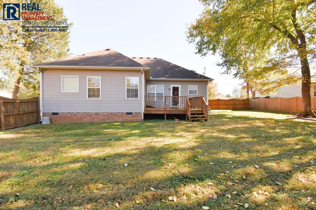 Welcome to this adorable 3-bedroom, 2-bathroom home, perfectly situated on a cul-de-sac and corner lot in the charming city of Murfreesboro. This home boasts a spacious fenced-in backyard, perfect for outdoor activities, and a large deck for entertaining or simply enjoying a peaceful evening. The attached garage provides convenient parking and additional storage space. Inside, you'll find a modern kitchen equipped with stainless steel appliances and sleek granite countertops. The home also includes laundry hookups for your convenience. This property offers a blend of comfort, style, and convenience, making it a perfect choice for your next home. See a video tour on our website. See a 360 tour on our website. This home is professionally managed by locally owned and operated Real Property Management Rental Solutions. View this home on our website at: Qualifications: Income that is 3x the rent; credit 600+; utilities can not be past due or in collections and good previous landlord references. Application fee: $50 per resident of the home who is 18 and over. Renters insurance with personal liability coverage is required. Technology and onboarding fees may apply. Pets will be considered with a $450 pet fee and $40 pet rent/month. Nearby schools: Stewartsboro Elementary, Blackman Middle, Blackman High School (verify school zones)