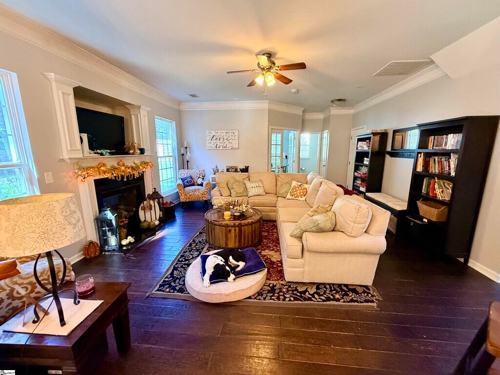 Wonderful 4 BR/2.5 bath home conveniently located to Woodruff Road corridor for shopping, sports club, restaurants, and more. Also located in Bells Crossing Elementary district! This home features an open floor plan, 2-story foyer, formal dining room, all stainless steel appliances, gas burning fireplace, breakfast nook which leads to the backyard, and all bedrooms located upstairs. Great office or study area off of living room area with french doors. Hardwood floors throughout on main level. Large private master suite with double doors leading into master bath with a garden tub, separate shower and a walk in closet. Backyard is private and completely fenced in. Neighborhood features a community pool, some sidewalks, and lighting. Call to schedule your showing before its gone!