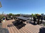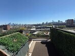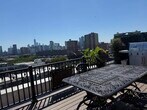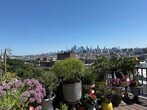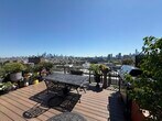 Spectacular NYC Skyline Views! Discover this stunning Ogden Avenue duplex penthouse, a rare gem boasting two private terraces with brand-new synthetic decking and railings, offering unobstructed panoramic views of the Manhattan skyline. This thoughtfully designed 2-bedroom, 1.5-bath residence combines historic charm with modern luxury. An open floor plan showcases exposed brick walls, soaring ceilings, and a cozy wood-burning fireplace, while the fully renovated kitchen features 3cm Aurea stone countertops, stainless steel gas appliances, and a brand-new Bosch dishwasher. Sophisticated upgrades include hand-scraped solid acacia hardwood floors, new Andersen windows and doors, custom closets including a walk-in, and a new Samsung washer/dryer in-unit. Comfort is enhanced with dual-zone heating and cooling controlled by Nest thermostats, along with a spiral staircase featuring a custom railing. The bathrooms are newly renovated and elegantly appointed with Kohler fixtures, a pedestal sink, Bianco Carrara honed marble floors and shower walls, and a double vanity topped in Carrera marble. Mechanical systems are updated with a newer A/C unit, furnace, and hot water heater (2016). Set on a quiet, private cut-de-sac, residents enjoy access to a quiet secluded enclave playground at Janet Moore Park, community garden, and dog park with the added convenience of easy street parking—all just steps from sweeping Manhattan views. This penthouse blends timeless style with modern comforts, making it the perfect urban retreat.