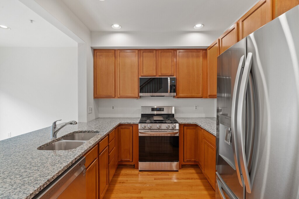Pristine Townhome tucked away in a private, gated courtyard community on quiet Pilgrim Landing in the heart of Federal Hill. The main living level includes a large living room with gas fireplace, high ceilings, and recessed lights. The kitchen includes tons of cabinet space, granite counter tops, modern stainless steel appliances, and under cabinet lighting. The dining room can accommodate a large table with seating for eight. Your spacious deck perfect for entertaining is accessed by large patio doors in the dining room.. Upstairs you'll find two large bedrooms, two full bathrooms, and the stacked laundry closet. The master suite includes three closets and en-suite bath with dual vanity and jetted tub. On the entry level, you'll find your third bedroom and access to the 1 car garage. A second car can be parked on the parking pad. Walk to Cross Street Market, Downtown, Parks and just steps away from University of Maryland Shuttle and Charm City Circulator. Schedule your viewing before this gem gets snapped up. Features: Hardwood floors throughout Washer/dryer in unit Central HVAC Private Garage Parking Modern stainless steel appliances Granite counter tops Garbage disposal Microwave Dishwasher Gas range Ceiling fans Tons of storage space Private balcony Gas fireplace Pet friendly, no extra fees Professionally managed & maintained Online resident portal & rent payment