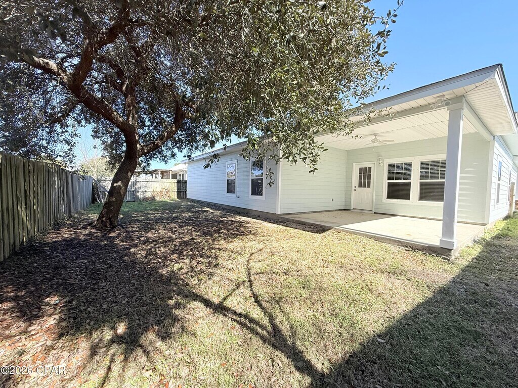 Welcome to this beautifully maintained 4-bedroom, 2-bath ranch-style home located on a private and friendly street just half a mile from the beach and 1.75 miles from Pier Park. This home combines modern comfort with coastal convenience in one of the most desirable areas of Panama City Beach.Interior Features:- Open-concept layout with spacious living and dining areas- Hardwood floors throughout the main living spaces and new carpet in bedrooms- Gourmet kitchen with granite countertops, stainless steel appliances, pantry, and abundant cabinet space- Natural light throughout with large windows in every room- Ceiling fans in each room for year-round comfort- Primary suite includes a large soaking tub, separate walk-in shower, dual vanities, and a spacious walk-in closet- Generous closet space and plenty of storage throughout the homeExterior Features:- Fenced backyard with a covered patio, perfect for outdoor dining and entertaining- Two-car garage with built-in bike rack storage- Outdoor shower rinse-off for easy cleanup after beach days- Beautifully landscaped front yard with a mature orange tree- New air conditioner and smart thermostat for improved efficiencyLocation: This home is ideally situated on a quiet private street with friendly neighbors. Enjoy the convenience of walking or biking to the beach, Pier Park, restaurants, and shops while coming home to a peaceful residential setting.Experience the best of Panama City Beach living in a home that offers both comfort and convenience.Schedule your tour now!