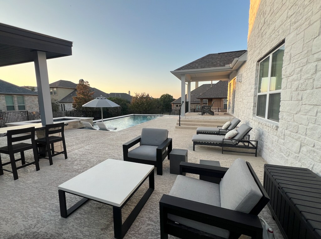 Spacious and stunning fully furnished home in one of the most desirable locations in the Austin area (Lakeway) within the prestigious Rough Hollow community (lakeside living with the most amenities in all of Austin). This home is the most convenient area in Rough Hollow as it is only 2 blocks away (3 minute walk) from the community center featuring 2 tennis & pickle ball courts, full basketball court, soccer field, volleyball court and 3 pools (1 adult pool) plus a lazy river. Residents in this community are part of the Rough Hollow Yacht Club which gives you free access to kayaks, paddle boards, another pool with cabanas and ability to join the Freedom Boat Club to rent out many kinds of boats including double deckers with water slides, lilly pads and tubes to take out on the lake. Enjoy easy access to pre-schools such as Lupine Lane and A New Day Child Development Center along with exceptional schools (Rough Hollow Elementary, Lake Travis Middle School and Lake Travis High School). Lake Travis Middle School has all the major activities and sports teams competing in tournaments and preparing students for High School i.e. Basketball, Football, Volleyball, Soccer, Track & Field, Cross Country, Golf, Tennis, Band, Dance, Cheer, Robotics and Chess Club. Within this area is Bee Creek Sports Complex (1.7 miles) featuring 4 full soccer fields, 1 baseball field, also just 1.8 miles away from World of Tennis and next to the Rough Hollow community fitness center is the indoor/outdoor Canyon Grille restaurant with beautiful sunset views. Nearby golf courses include: Public: Falconhead Golf Club- Private: The Hills, Flintrock Falls, Yaopon, Live Oak. This home sits on 1/3 of an acre (away from busy roads and power lines / towers) with a full 3-car garage, luxurious large backyard with custom outdoor Pergola, brand new kitchen and grill (never been used), custom countertops, large heated pool and heated spa/hot tub. This home features dual master suites (larger one on 1st floor), plus 2 bedrooms (4 total), 3.5 bathrooms, dining room, home office, game room, living room with high ceilings and large media / movie room (120" screen to be included). Very friendly neighborhood where families can feel at ease (especially when everyone has Ring / Nest cameras) and the only thing to worry about is driving too fast - while Lakeway police are always patroling, they are very friendly and helped one of the residents out not too long ago, by putting on a spare tire since AAA was going to take an hour and the officer didn't want them waiting or taking up a lane that long for safety reasons, simply amazing! Ideal lease would be between 6-12 months and flexible option for the home to be partially or completely furnished. If interested, please indicate when you would like to move in, how many months and a little background about yourself. Tenant will be responsible for all utilities- owner will be responsible for HOA fees which provide access to the Rough Hollow fitness center, 3 pools and tennis, pickle ball, basketball courts and soccer field (residents can reserve courts 1 week in advance online) and Yacht Club (free kayak, paddle boards, Infiniti pool and cabanas - this is a separate pool from the 3 pools at the community center).