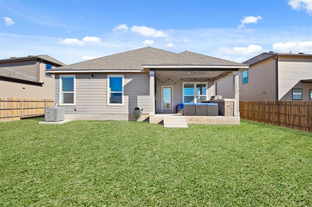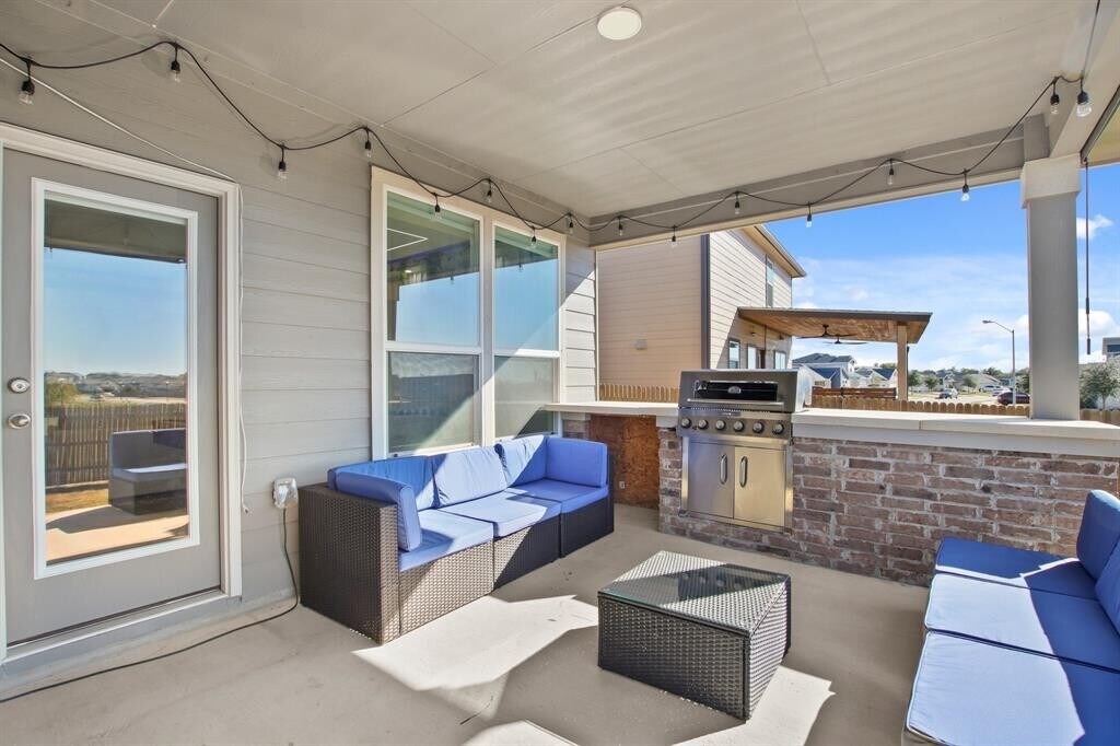 This modern, nearly-new 3-bedroom home with outdoor grill and custom wine wall offers a premium lifestyle in Elgin. The open-concept interior features a gourmet kitchen with stainless steel appliances, a large island, and a striking custom-built wine wall. Beyond the interior, you'll find a true outdoor oasis—a covered patio complete with a built-in outdoor grill included! and a cozy fireplace/media wall for year-round entertaining. Enjoy the primary suite with a dual-sink bath and two flexible secondary bedrooms (perfect for an office or gym). Solar panel, fully fenced backyard and dedicated laundry room. Quick access to Highway 290.