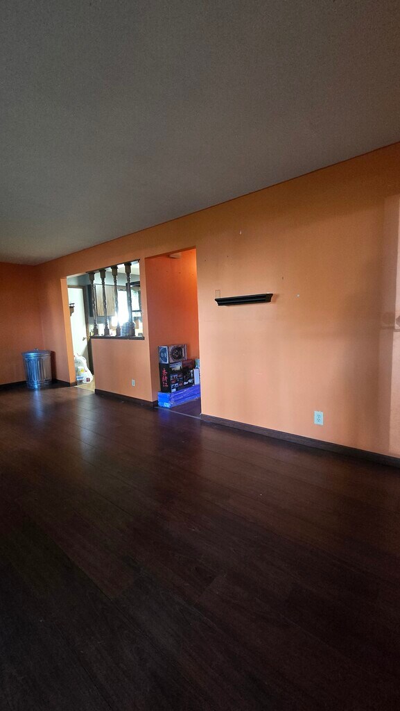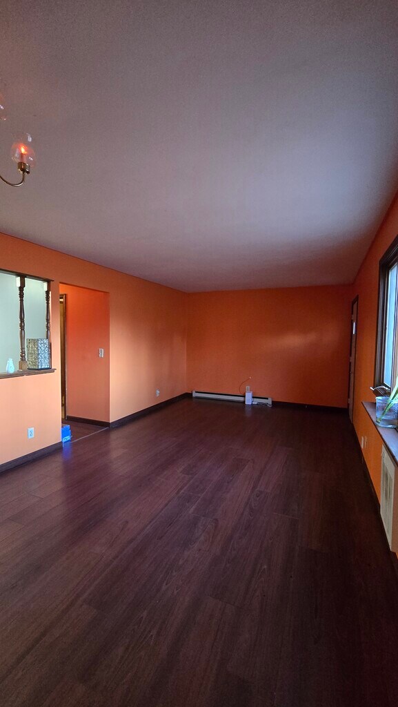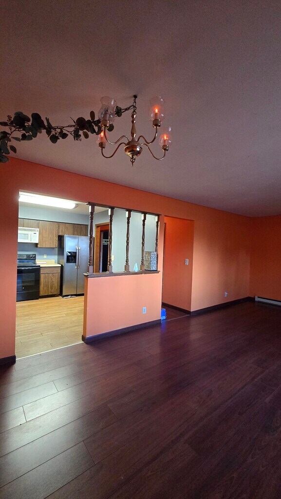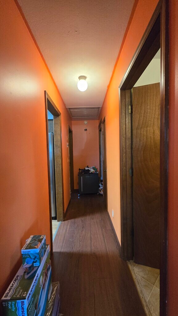 2-Bedroom Character-Filled Home with Mature Shade TreesLooking for a home that stands out from the cookie-cutter crowd? This cozy 2-bedroom, 1-bathroom house offers a perfect blend of unique personality and practical living spaces.The Home Highlights:Bright & Airy Living: The main living area features striking warm-toned walls and rich, dark wood-style flooring, creating an inviting space for relaxation or entertaining. A decorative chandelier adds a touch of classic charm.Functional Kitchen: Cook with ease in a kitchen equipped with stainless steel appliances (including a side-by-side refrigerator and built-in microwave), ample wood cabinetry, and durable wood-look flooring.Convenience at Hand: No more trips to the laundromat! This home includes a dedicated in-unit laundry area with a full-size washer and dryer plus overhead storage shelving.Spacious Bathroom: A clean and functional bathroom features a full tub/shower combo and a large vanity with mirrored storage.Outdoor Character: Enjoy the shade of beautiful, massive mature trees right in your front yard. The exterior includes a small porch area and flower boxes, perfect for adding your personal touch of curb appeal.Location & Perks:Nestled in a quiet setting with plenty of green space.Two distinct bedrooms, including one with bold deep-purple accents and a ceiling fan for comfort.Functional layout with a semi-open pass-through between the kitchen and living area.