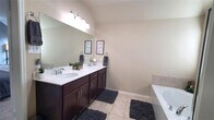 Excellent, spotless, well maintained! This is a charming home that is an exception in the market. Bay window, granite counters, update tech features including smart dimmable light fan switches, Nest thermostat, updated ceiling fans with remote controls, chandelier, TV mounting brackets with power and 4K HDMI cables installed. Custom rain shower head, natural gas line to patio for outdoor grill, and patio furniture. Curtain rods and blinds, guest bath toilet cabinet, optional window pet door, garage wall tool peg board and refrigerator, washer and dryer are available. Wonderful community pools, playgrounds, workout facility, hike and bike trails right on the lake! This is a gorgeous home you don't want to pass up. Move in ready and available in just a few weeks. Hurry before its gone.