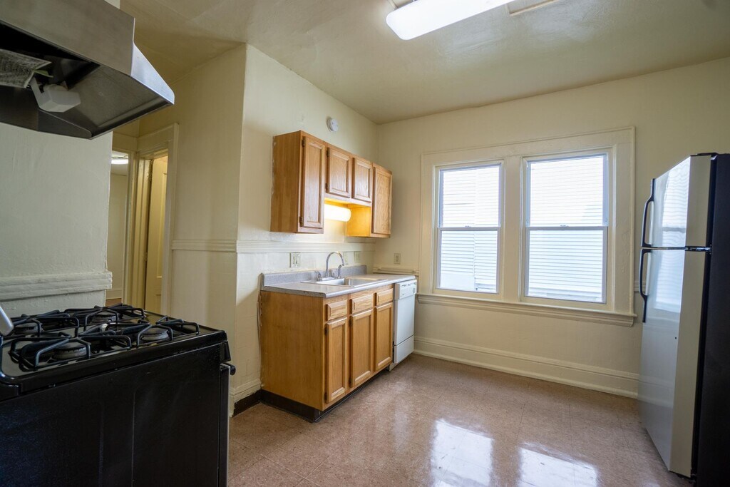 First floor flat with front porch Two Bedrooms Full living room and dining room Newly remodeled bathroom Hardwood floors Energy Star stainless steel appliances including dishwasher, refrigerator and gas stove Granite kitchen counter tops Pantry Energy Star gas furnace and hot water heater Energy Star coin-op washer & dryer Energy Star windows & LED interior lighting LED exterior security lights Basement glass block windows Hardwired 10 year Smoke/CO detectors with battery back-up No off street parking APCO UV filter installed on furnace NO PETS PLEASE No extra charges or fees