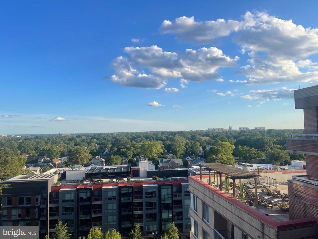 Experience the best of Clarendon living in this gorgeous and spacious 2-bedroom, 2-bathroom condo, perfectly situated in the vibrant heart of the neighborhood. This sun-drenched residence features beautiful hardwood floors and kitchen equipped with sleek granite countertops and stainless steel appliances. The primary bedroom is a true retreat, offering an en-suite bathroom and a generously sized closet. A second bedroom also includes its own en-suite bath and a private balcony, providing a perfect spot for morning coffee. Enjoy stunning panoramic views from your windows. Convenience is key with an in-unit washer and dryer and one dedicated parking space. The building provides a wealth of premium amenities, including a 24/7 concierge, a well-appointed library/meeting room, a fitness center, a clubroom for gatherings, and a spectacular rooftop pool. You'll be just 1.5 blocks from the Clarendon Metro Station, with Trader Joe's, a variety of restaurants, and premier shopping right outside your door.
