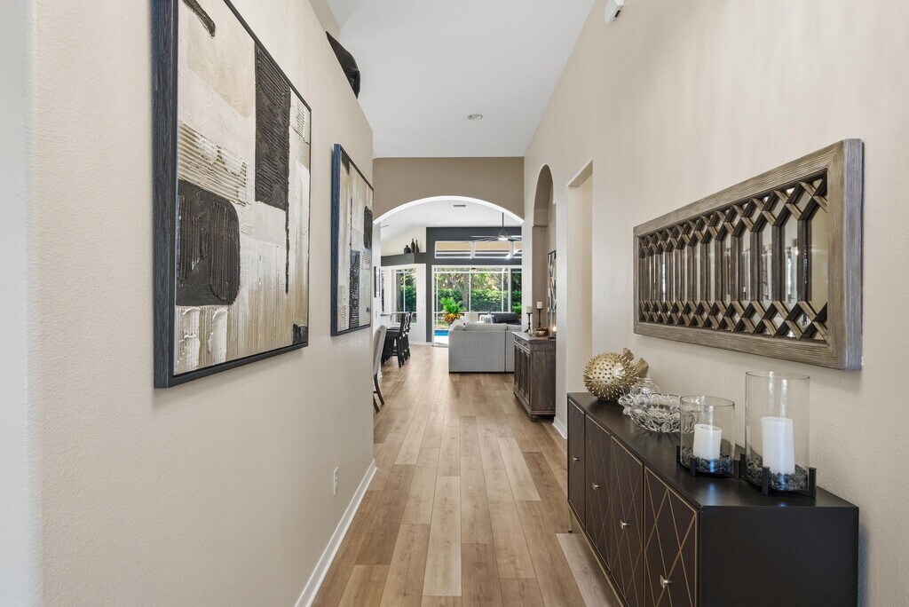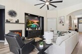 This 3 Bedroom 2.5 Bath Terra Vista Pool home has so much to say. The exterior Beauty is just the Beginning! This extremely popular layout has a Den/Bedroom, very open and bright with many windows to capture the sought after Southern exposure, not to mention that sparkling Blue Large pool. The kitchen has new appliances (2023) ready to entertain and if its a rare cool evening turn on your electric fireplace to set the right ambiance. The Owners suite is very welcoming with custom closets and the owners Bath has a large walk-in shower with a Shower Tower. The guest rooms are also made for your guests to really enjoy with the second guest room having a built in murphy bed giving this room so much versatility. We must mention the 16 x 32 pool that awaits with its gas heater, ready for some serious swimming. This is the Time and this is the Place! Don't Delay Schedule your showing right away!