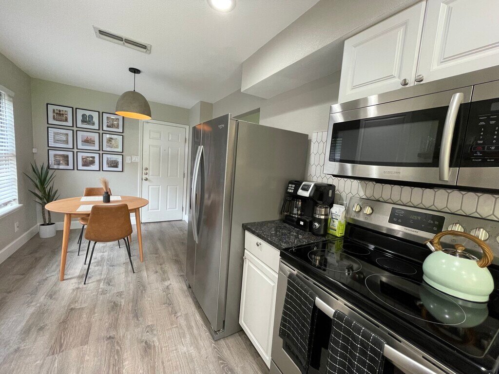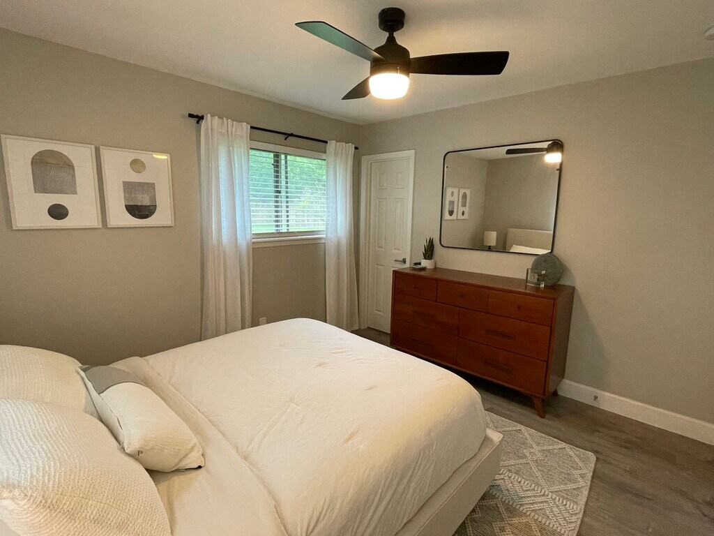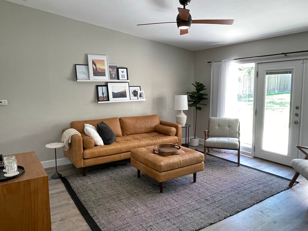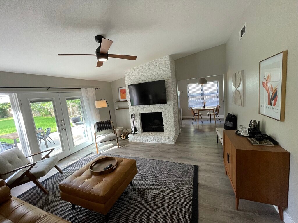 $50 / month discount for leases of at least 6 months. Updated and fully furnished 3 bedroom / 2 bathroom in north central Austin's Quail Creek neighborhood minutes from the Domain shopping and entertainment district and Q2 / Austin FC stadium. Completely furnished and well-appointed...just bring your suitcase. Enjoy the beautiful patio and large backyard. By car, this house is 5 minutes to the Domain, 15 minutes to downtown barring heavy traffic, and 15 minutes to the Apple campus and broader tech corridor. Q2 stadium is walkable (25 minutes by foot, less than 5 minutes by car) with Celis brewery halfway in between the stadium and home. Bouldin Acres (outdoor drinkery / beer garden with pickleball and dog park) on Braker Lane is just over 1 mile away. Additional info: -Tenant responsible for all bills (gas, electric, water, sewer, trash, internet) -Option to keep utilities in landlord's name including fiber internet for $400 more per month. -Minimum lease term 3 months with preference given to longer leases -For leases of at least 6 months in duration, $50 monthly discount off listed rent price -Lawncare is tenant's responsibility unless tenant wishes to pay an additional $50 / month for lease term for up to twice monthly mowing during peak growing season. -AT&T fiber up to 500mbps download and upload -Simplisafe security system -Wood burning fireplace in living room is sealed and NOT available for tenant use Note the 3rd bedroom is currently used as an office only with no bed--only a sitting / standing desk (see pictures). Depending on tenant needs, a bed and nightstand can be provided. Requirements: -Proof of income of at least 3x monthly rent -Minimum 650 credit score Pets considered on a case-by-case basis with additional deposit. Available February 21.
