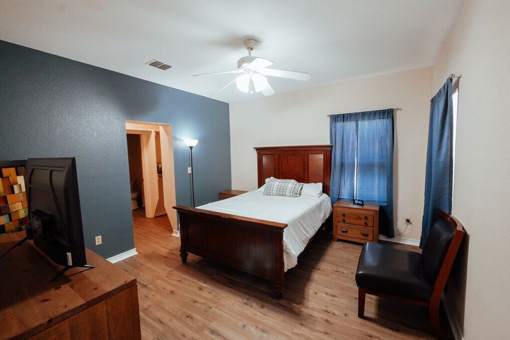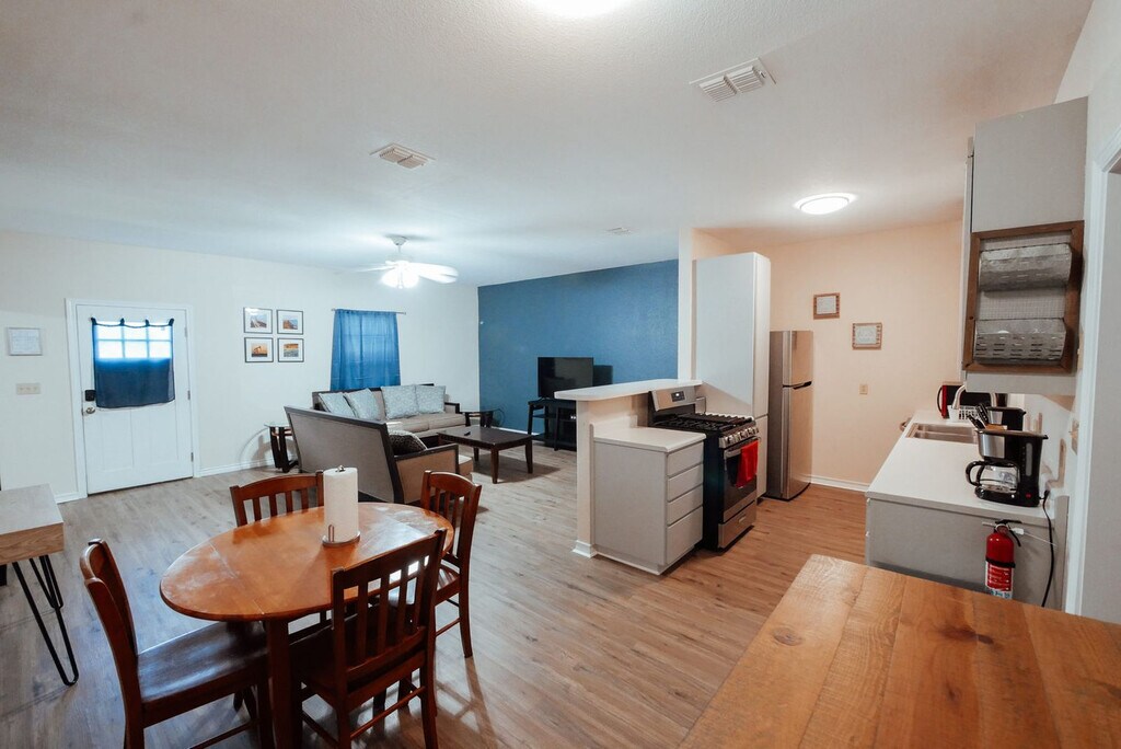 Experience a comfortable and convenient stay in this fully furnished 2-bedroom, 2-bath home in Corpus Christi, just minutes from the airport and local refineries. Perfect for extended stays, it features cozy living spaces, smart TVs in each bedroom, and modern amenities. Unwind in the spacious backyard with a grilling station and patio seating. Ideal for business travelers or families, this home accommodates up to 4 guests for a relaxing and hassle-free stay. Step into comfort and convenience with this centrally located 2-bedroom, 2-bathroom home in Corpus Christi, just minutes from the Corpus Christi International Airport and local refineries such as Kinder Morgan, Kiewit, Exxon Mobil, Valero, CITGO, and Flint Hills. The primary bedroom offers a serene retreat with a plush queen-sized bed, premium linens, and ample closet space for extended stays. A bedside table and reading lamp add to the cozy ambiance, while blackout curtains ensure a restful night's sleep. The second bedroom features a comfortable queen-sized bed, soft bedding, and a spacious closet. Perfect for additional guests or family members, it also includes a work desk, making it an excellent space for remote work. Fully equipped with modern appliances, the kitchen is ready for any culinary endeavor. It includes a refrigerator, oven, microwave, coffee maker, and all the cookware, utensils, and dishware you need. A cozy dining area for four completes the space, perfect for sharing meals or planning your day. Relax in the inviting living room with comfortable seating, a flat-screen TV, and high-speed Wi-Fi for streaming or work. The space is thoughtfully decorated to make you feel right at home, whether you're unwinding after a long day or entertaining guests. The first bathroom boasts a shower, fluffy towels, and complimentary toiletries. Its clean, modern design provides a relaxing experience. The second bathroom features a walk-in shower, contemporary fixtures, and an array of essentials for your convenience. Step outside to a large backyard designed for relaxation and fun. Enjoy the grilling station for cookouts, complete with patio seating for outdoor dining or unwinding under the Texas skies. The spacious yard offers ample room for recreation or quiet moments. Pets are welcome with a $120 per stay pet fee per pet. There is a maximum of either one large animal 50-75 lbs or two small animals under 40 lbs. All pets must be kenneled and house trained, leashed at all times if outside the home, and kept off all furniture, bedding, and off sheets and blankets or a minimum cleaning fee of $100 will be assessed. All guests assume responsibility for any damages or injury caused by their animals. Emotional support animals are not exempt from this pet policy and pet fees must be paid. This home is thoughtfully curated for extended stays, providing all the comforts of home with the convenience of being close to Corpus Christi’s refineries, airport, and local attractions. The home is equipped with Smart TVs and all streaming services are bring your own login (BYOL). Some TVs may have the streaming service already logged in but login credentials for any streaming services are not provided. To help you settle in, a starter pack of essentials including trash bags, dishwashing pods, toilet paper, shampoo, conditioner, body wash, coffee, creamer, and sugar is provided. These items are intended to get you started — any additional supplies beyond the starter pack are the guest’s responsibility unless your stay is 14 days or longer, in which case a mid-stay replenishment may be offered. Registration Number: 090858 [SI]