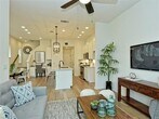 This like new home with high end upgrades! This bright and modern David Weekley home has it all! HOA-maintained yard with private, landscaped front patio. The home features hardwood floors downstairs, as well as the stairs and upstairs hall. Gorgeous white quartz countertops w/ stainless appliances & large kitchen sink in the island. All bedrooms & laundry upstairs. Conveniently located near Apple, MetroRail and numerous restaurants & retail establishments. Washer, dryer and refrigerator included.