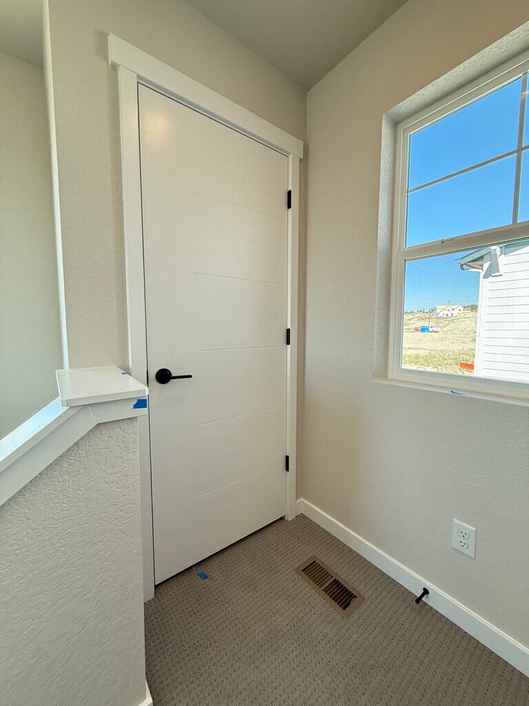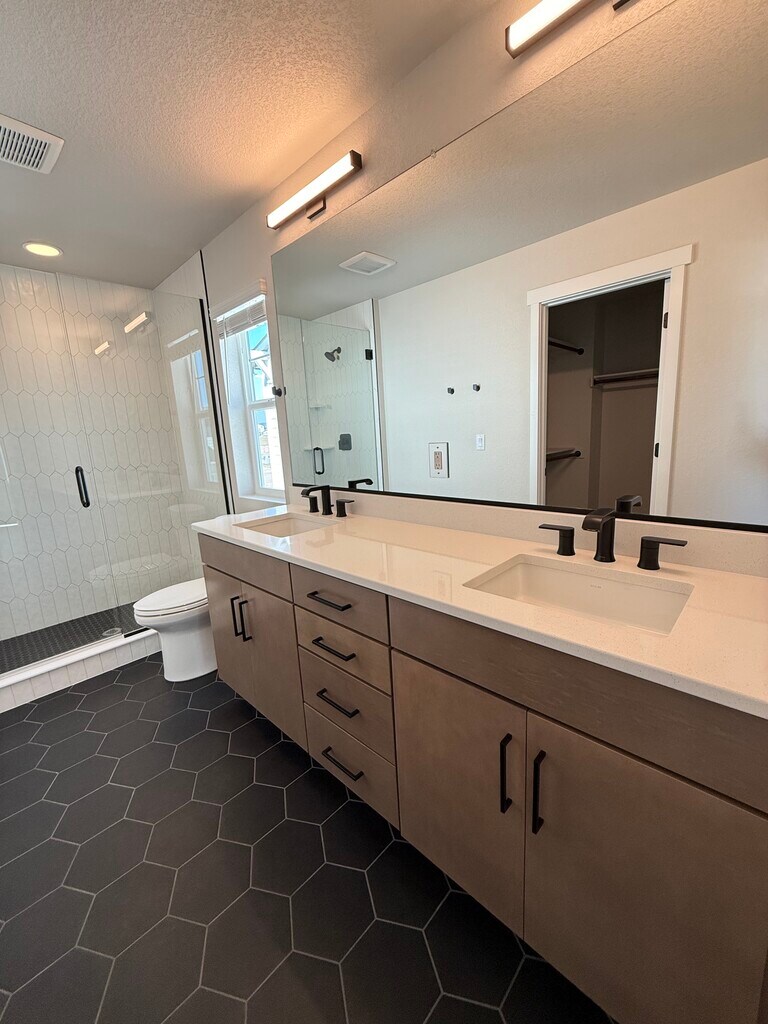 10202 Spry Street. Jasmine two story plan in Wolf Ranch three bedrooms 2 1/2 bathrooms two car garage home as you stepped through the front entry. You’ll be treated to an open concept, living dining and kitchen adjacent to the great room. You’ll find a dining area that opens up to a patio ideal for alfresco dining and outdoor enjoyment the kitchen both cabinets in a split finish with black painted uppers and maple lowers in a pecan stain complemented by elegant, black mist, granite countertops, and a leathered finish a large island capable of seating for serves as a focal point for gatherings and casual meals. The kitchen also features a pantry and stainless steel appliances, including a gas range and refrigerator. Head upstairs to the primary suite as serene haven located on one side of the upper level for maximum privacy. The primary bedroom include a bathroom with a spacious shower. A vanity with dual sinks and a generous walk-in closet separated from the master suite the two additional bedrooms provide ample space and comfort these bedrooms share a well appointed secondary bath blinds are included in all bedrooms, bathrooms, and throughout the house the upper level also includes a laundry room with a washer and dryer included. The home comes equipped with air-conditioning, smart home package and active radon mitigation system, full yard, landscaping and fence provide a beautifully manicure yard and privacy. The HOA also includes trash removal, snow removal and a community pool. This is located in D20.