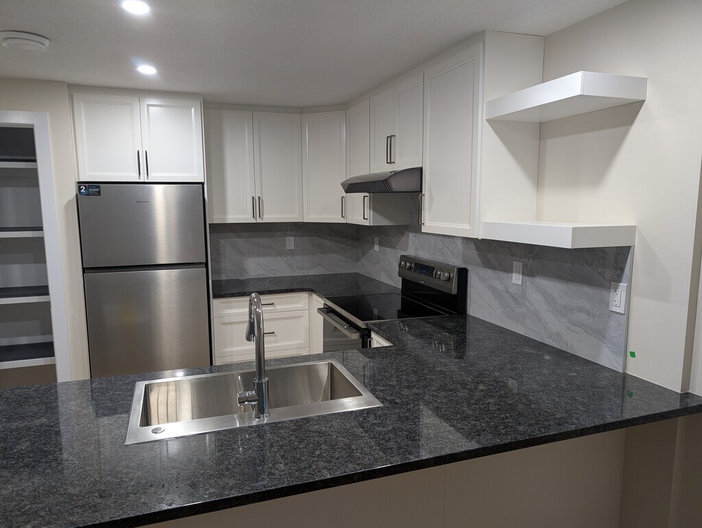 BRAND NEW Bright 2-Bedroom Basement Suite in Morinville with High Ceilings This 2-bedroom basement suite is in a new build located with quick access to highway 2 (minutes from St. Albert) and local shopping centers. It is right across from an elementary school. Dedicated parking is also included. This is a quiet and friendly neighbourhood. The suite itself has a private separate entry and dedicated laundry. It was built with upgraded soundproofing in mind, includes a large walk-in closet for extra storage, and a good-sized pantry. The suite includes a good sized kitchen with beautiful granite countertops, all-wood cabinets, and a large peninsula. Efficiency and good use of space were major considerations for its design. All the appliances are brand new (including a dishwasher), and the unit includes large windows and closets. There will also be a large shed added in the near future for yet more additional storage. Location Easy access to highway 2 Very close to shopping Across from elementary school Size 2 bedroom Full bathroom 8-foot ceilings in main areas, 9-foot ceilings in the bedrooms and regular closets 750sqft living space Large windows Large closets Large kitchen with max storage and peninsula Additional storage Large walk-in closet for extra storage Nice sized pantry Large future shed for extra storage Additional Features New build Upgraded soundproofing in doors, walls, and ceiling Dedicated laundry Brand new appliances (including dishwasher) Beautiful granite countertops in bathroom and kitchen All-wood cabinets Dedicated parking spot out back Private separate entrance Will consider certain pets
