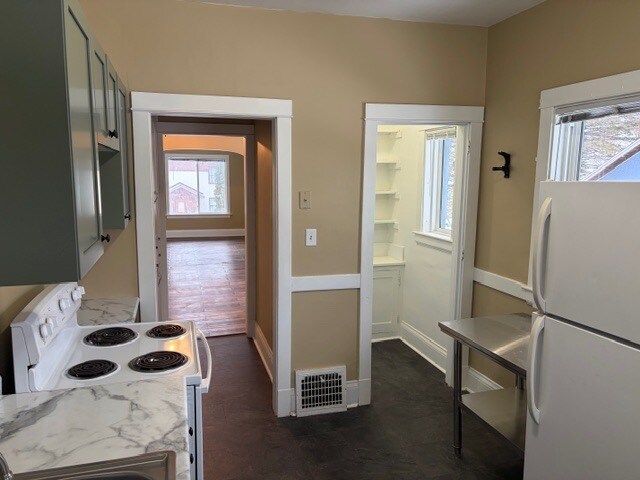 Beautifully renovated and spacious 2BR/1 bath upper apartment in a charming Morgan Park duplex. At 1100 square feet this apartment boasts a large living space with abundant new windows offering plenty of natural light. The kitchen has brand new flooring and cabinets as well as a traditional butler's pantry. Off of the kitchen you will enjoy a private balcony, which faces the south and west for maximum sun in Duluth's cooler seasons. This apartment is just 2.5 blocks from the St. Louis river, which has a gravel surfaced walking trail. It is just two blocks from the Morgan Park community center, which has a playground, skating rinks, and a basketball court. The apartment has its own laundry machines in the basement as well as one off-street parking space and lots of storage space. Pets allowed. Owner pays trash. Tenant pays heat, electric, sewer, and water.