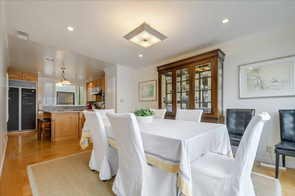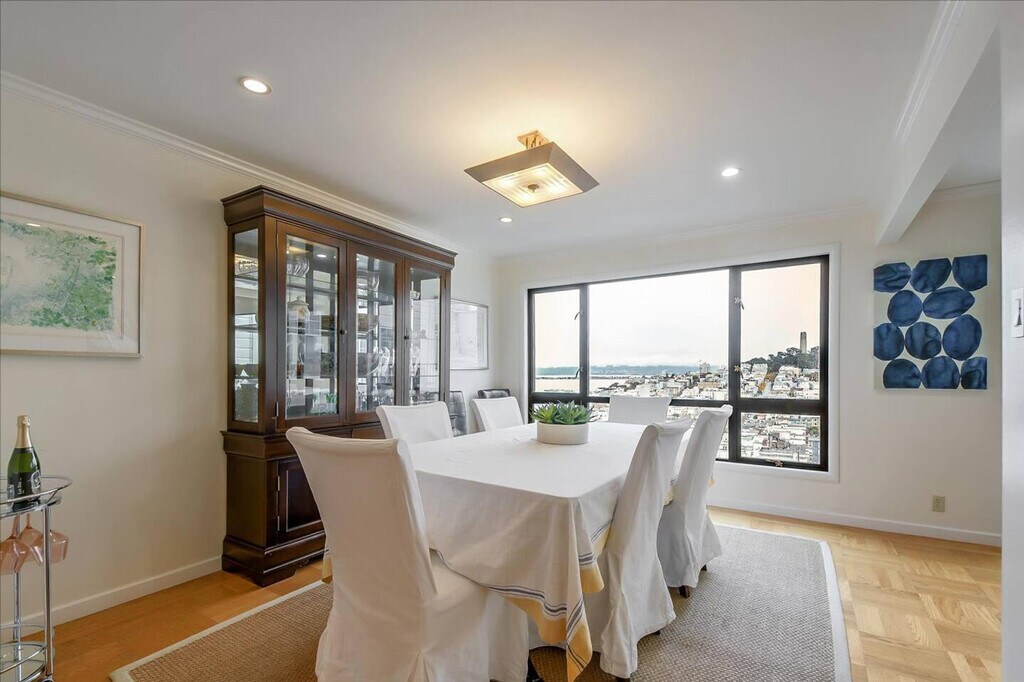 This spacious 3-bedroom, 2-bath top floor flat in San Francisco's Russian Hill offers new furnishings, hardwood floors, and a modern gourmet kitchen equipped with a Sub-Zero fridge, Wolf range, and Miele oven. Located just one block from the famous Lombard's Crookedest Street and within walking distance to Fort Mason, Fisherman's Wharf/Pier 39, Ghirardelli Square, and the neighborhoods of North Beach, Chinatown, and Union Square, you'll feel at home in this vibrant area. The apartment is designed for comfort and convenience, featuring a modern gourmet kitchen that's perfect for preparing meals at home. Enjoy spectacular views of fireworks and airshows during July 4th and other events throughout the year from the comfort of your living room. Parking is included for small or medium-sized vehicles only. The Russian Hill neighborhood is ideal for exploring San Francisco, known for its intimate local vibe and proximity to major attractions. Walk to a variety of excellent restaurants and easily access the Financial District, city center, and museums. Please note that initial supplies such as toilet paper, soap, shampoo, paper towels, dishwasher detergent, and trash bags are provided to make your arrival easier. Any additional supplies needed during your stay will need to be replenished by the guest as these items are not restocked. Cleaning supplies are not provided due to safety issues. [SI]