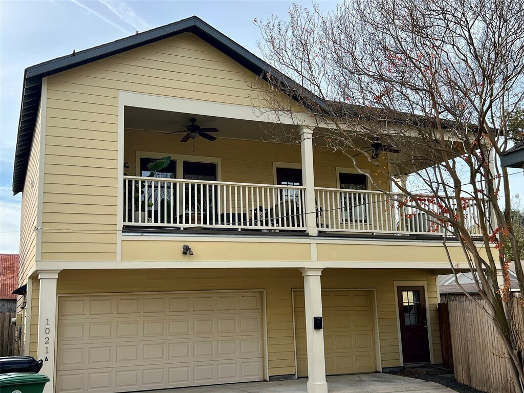 Beautifully designed,recently-built garage apartment located in the heart of the Houston Heights. This spacious (900 sq ft) two-bedroom,one-bath home features soaring high ceilings and rich wood floors throughout,creating a bright and inviting atmosphere. The open-concept kitchen is completely accessible to the living area and features a large island,granite countertops,abundant cabinet and counter space. Both bedrooms offer generous walk-in closets,while the bathroom is also nicely finished. Enjoy outdoor living on the enormous private balcony,with a full-size washer and dryer conveniently located in the adjacent laundry room. Additional features include a private fenced backyard,and one assigned garage parking space. Landlord takes care of the lawn,and also pays for gas and water. A unique lease opportunity in one of Houston’s most desirable neighborhoods. This spells HOME! MLS# 3238208