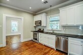 Rae Lynn WhiteRenovated Heights bungalow with huge, fenced backyard on a tree-lined street near the fantastic Farmers Market on Airline. Great natural light in every room, neutral interior color, recessed lighting and a detached two-car garage. (Garage apartment tenants have their own garage and their own backyard.) Current occupants use the house for their office.