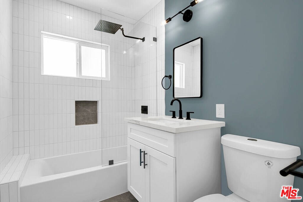 Spacious and bright 1-bedroom, 1-bath residence in the heart of West Hollywood. Located on a peaceful street just off Fairfax and just a block from Whole Foods, offers the perfect blend of comfort and style in a highly desirable neighborhood. This newly renovated unit features an open and airy layout with great natural lighting throughout and a private balcony ideal for relaxing or enjoying the West Hollywood lifestyle. The interior showcases Carrera marble countertops, recessed lighting, and brand new natural plank flooring, creating a clean, modern feel. The kitchen is equipped with top-of-the-line appliances, including a refrigerator with ice maker and water dispenser, dishwasher, and gas range oven. Additional highlights include in-unit laundry, ample cabinet space, and a walk-in closet. The building is fully gated and secured, offering both convenience and peace of mind. Water and trash are included. Tenant pays gas and electricity. MLS# 26672733