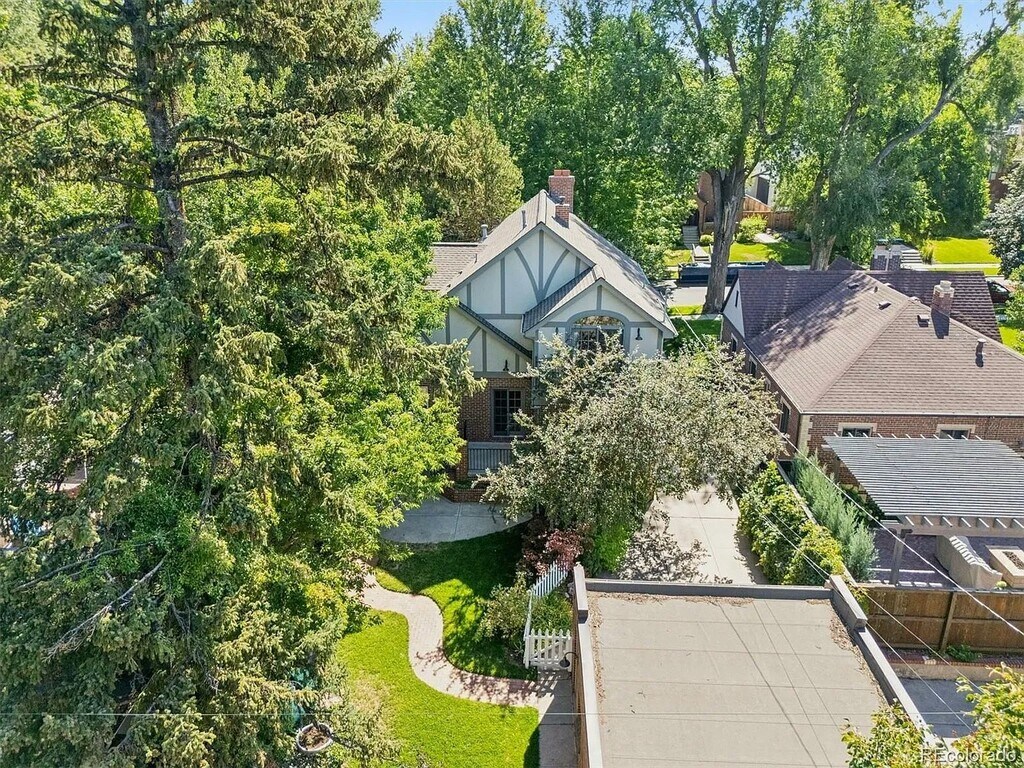 Welcome to this beautifully expanded Tudor home in the highly sought-after Bonnie Brae neighborhood. Surrounded by mature trees and lush landscaping, this property offers a quiet, private retreat right in the heart of the city. Inside, the home blends classic character with modern comfort. The home features an updated kitchen filled with natural light, french doors that connect both a covered front porch—ideal for morning coffee—and a cozy backyard patio perfect for al-fresco dining. The spacious primary suite encompasses the entire upper level and includes a fireplace, sitting room/den, and a Juliet balcony. Located steps from Washington Park and near the shops and dining of University, Old Gaylord Street, and Cherry Creek North, this home delivers the perfect mix of tranquility and urban convenience. Additional highlights include: Original Oak Wood floors Exposed brick breakfast nook Central air Washer and Dryer Ample storage throughout Long driveway + 2-car garage Beautiful Landscaping Located steps from Washington Park and near the shops and dining of University, Old Gaylord Street, and Cherry Creek North, this home delivers the perfect mix of tranquility and urban convenience. View photos, floor plan, aerials, and the virtual tour at the link below.