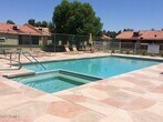 Lovely Active Adult - 55+ small subdivision with Heated Community pool & spa,tennis courts,shuffleboard,clubhouse with library & meeting room,workout room. New -gorgeous plank flooring in living areas 11/1. New carpet in bedrooms 11/1. Newer SS Appliances! Newer cabinets! Close to freeway & shopping! Light & bright inside! Large great room/dining area. Patio converted to AZ room- looks out to greenbelt! This unit is right near pool and clubhouse. Builtin garage cabinets in this One Car Garage - plus storage closet in enclosed patio/AZ room! Spacious over 1100 square feet 2 bedroom 2 bath - split floorplan. Refrigerator included. One tenant must be 55 and no occupants under the age of 18. No cats,Owner will consider one dog under 25 pounds.