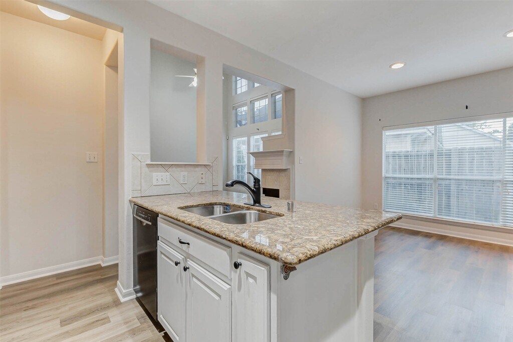 WELCOME HOME to your REMODELED townhome near Vintage Park with prime access to 249 & Beltway 8! NEW luxury vinyl plank floors (2025),FRESH Sherwin Williams paint (2025),NEWLY PAINTED CABINETS (2025),recent HVAC (2023),2-story ceilings,abundant natural light,gas fireplace,& open-concept design make this an exceptional home! Pristine floors & decorator paint flow seamlessly through the living,dining,study,kitchen,breakfast room,& primary bedroom. Expansive kitchen loaded with crisp white cabinets,granite counters,walk-in pantry. Private study features French doors & sparkling windows. Primary suite offers dual vanities,garden tub,frameless glass shower,& massive walk-in closet with direct access to the utility room. Find 2 bedrooms,full bath,& additional storage upstairs. Enjoy the outdoors in your private backyard with expansive deck,& don't miss the gorgeous park just steps from your front door! HOA responsible for front yard! Washer,dryer,fridge included! MLS# 52020379