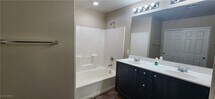 This beautifully updated home features a bright open floorplan with fresh paint and plush new carpet throughout. Offering 4 spacious bedrooms and 2.5 bathrooms, this home is designed for both comfort and functionality. Enjoy a large great room perfect for entertaining. The open kitchen boasts an island with breakfast bar, granite countertops, modern appliances, and ample cabinet and counter space. The primary suite includes a separate tub and shower for a spa-like retreat. Step outside to a private backyard with a covered patio—ideal for relaxing or entertaining. Located in the heart of Mountains Edge, this home is close to top-rated schools, Exploration Park, shopping, and easy freeway access. A fantastic layout for any lifestyle—don’t miss this incredible opportunity!