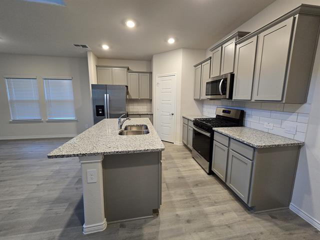 Welcome to this never-lived-in, 2024-built two-story home offering a thoughtful layout and modern comfort throughout. The home features four bedrooms, with two conveniently located on the main level and two upstairs, along with a stunning open, high-ceiling family room that flows seamlessly into a second-floor game area, creating an airy and connected living space. The spacious primary suite is designed for comfort, featuring dual sinks, a separate shower, and a Texas-sized walk-in closet. The well-appointed kitchen offers generous cabinet storage and comes fully equipped with a stainless-steel double-door refrigerator, making it ideal for everyday living and entertaining. The home also includes a washer and dryer for added convenience. Step outside to enjoy a large covered back patio, perfect for relaxing or outdoor gatherings. The backyard features an expansive, unobstructed view with no construction behind, offering a sense of openness, privacy, and long-term tranquility. Located close to schools and parks, the home sits within a vibrant community offering resort-style HOA amenities, including pickleball and basketball courts, a clubhouse for events, swimming pools with a pavilion, a dog park, playgrounds, scenic walking and biking trails, and a beautiful community lake. This is a rare opportunity to lease a brand-new home in a well-amenitized neighborhood, offering both comfort and lifestyle in one exceptional package.