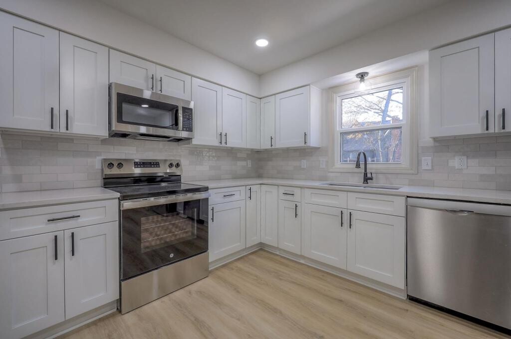 Welcome home to this beautifully updated 4BR/2.5BA home in Shawnee Mission School District! Enter into a SPACIOUS living room that flows into a formal dining room with access to DECK and backyard. UPDATED kitchen includes stainless steel appliances, plenty of counter and storage space. Second level has master bedroom with ENSUITE bathroom, two additional bedrooms and full hall bathroom. Fourth bedroom located on third level is spacious and an optional bonus room. FINISHED basement with FIREPLACE, built-ins and half bath is perfect for relaxing with friends and family. LARGE FENCED back yard includes both DECK and PATIO spaces for additional entertaining and dining options. LOCATION is close to schools, popular shops and restaurants, and easy freeway access. Don't miss this opportunity!!