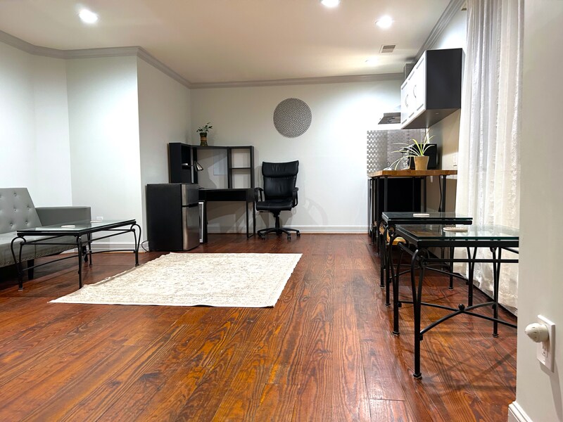Property Id: 2185514 Garden view freshly painted one bedroom apartment 724 Sq feet on the second floor of the house with a separate entrance. Includes full bathroom with dividing door, fridge, freezer, dishwasher, 2 closets, Free WiFi, ADT security. Hardwood floors, radiator heating, (no hot air blowing). Includes free parking space. Extra storage is available. Ikea furniture: desk with chair, book shelf, dresser, sofa and a bed. Washer and dryer on site. Tennis and pickle ball access. A quiet, comfortable space with modern conveniences, perfect for enjoying both work and relaxation.