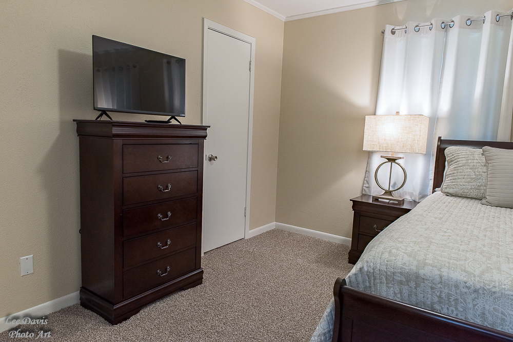 Beautifully updated 1166 square foot, two (2) bedroom, 1 bathroom townhome in a quiet and safe community. Two free dedicated covered parking spots are assigned to this unit only feet away from the back door which has a secure digital entry system. This home away from home is fully furnished with utility bills paid including electricity, water, and wi-fi. It comes complete with all amenities including kitchenware essentials and bathroom linens. Also featured in this non-smoking townhome are a brand new full-size washer and dryer- iron and ironing board- central air-conditioning and heat- new 65” smart television in the downstairs living area- new smart televisions in each upstairs bedroom- brand new queen sized beds and pillow-top mattresses- matching chest of drawers, bedside tables, and dedicated closet in each bedroom- jack and jill bathroom between the bedrooms with marble double vanity and combination shower/tub- new carpet upstairs and new wood-look tile floors downstairs in the living area. The downstairs area also features handsome and comfortable leather and wood furnishings- dining area with a table that seats four- a separate office area- a roomy half bath- and galley style kitchen with marble counter tops, a dishwasher, microwave oven, refrigerator, coffee maker, toaster, air-fryer, and electric cooktop range oven. You can also enjoy the private community swimming pool and tennis courts only a short walk from the back door. This home is conveniently located only minutes away from many of the best restaurants, shopping, grocery stores, and hospitals. Willis Knighton Pierremont Hospital and Christus Highland Medical center are 2 miles away, Willis Knighton Medical Center at Greenwood Road is 12 miles away, Ochsner LSU Academic Health Center at Kings Highway is 9 miles away, Willis Knighton Bossier Hospital is 14 miles away, and Cornerstone Hospital of Bossier City is 5 miles away. LSU-Shreveport is three minutes away as well.