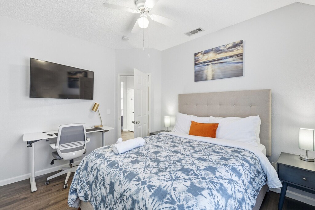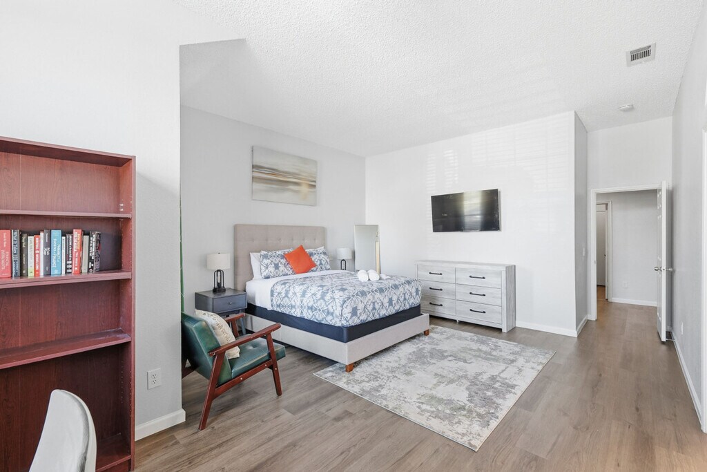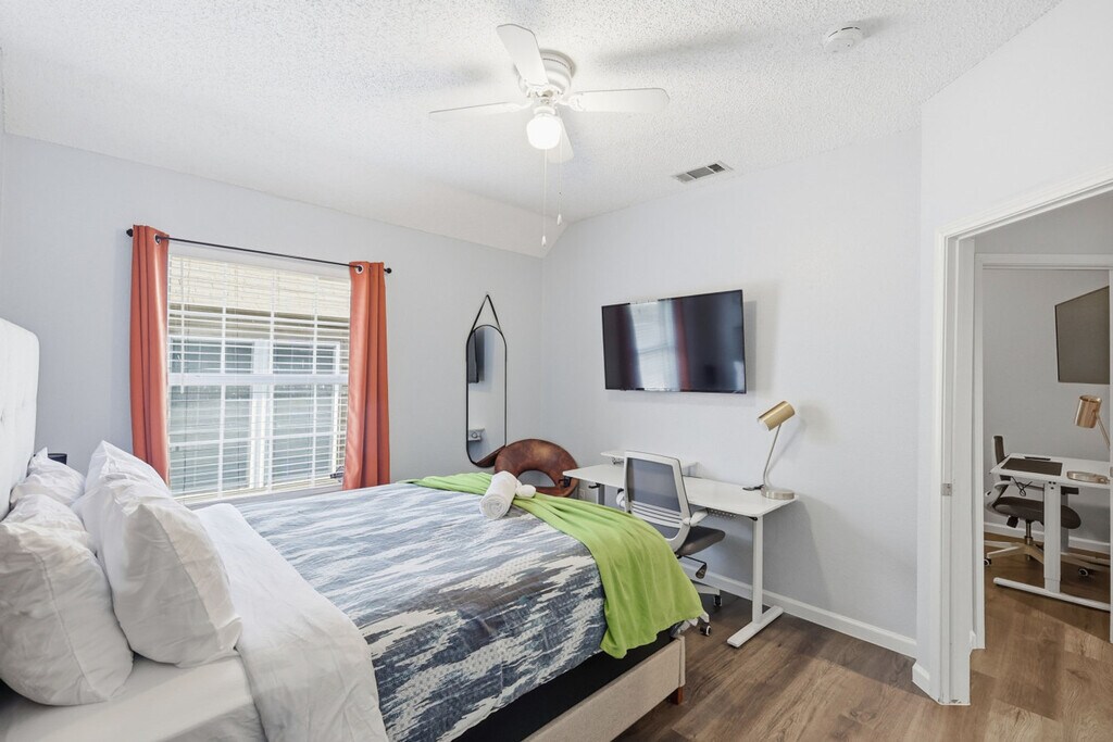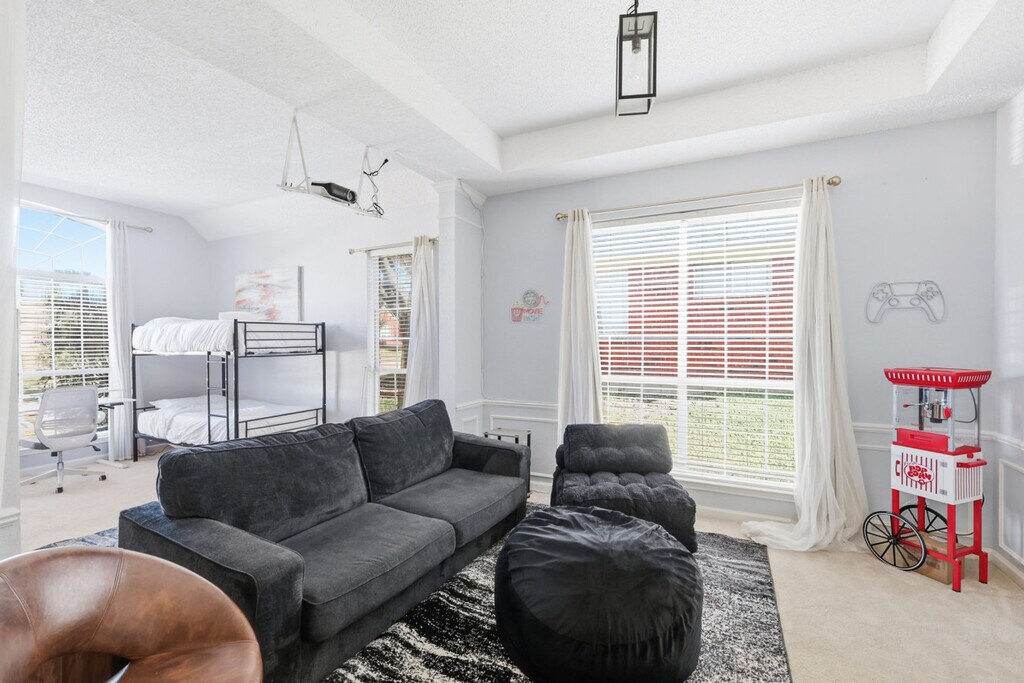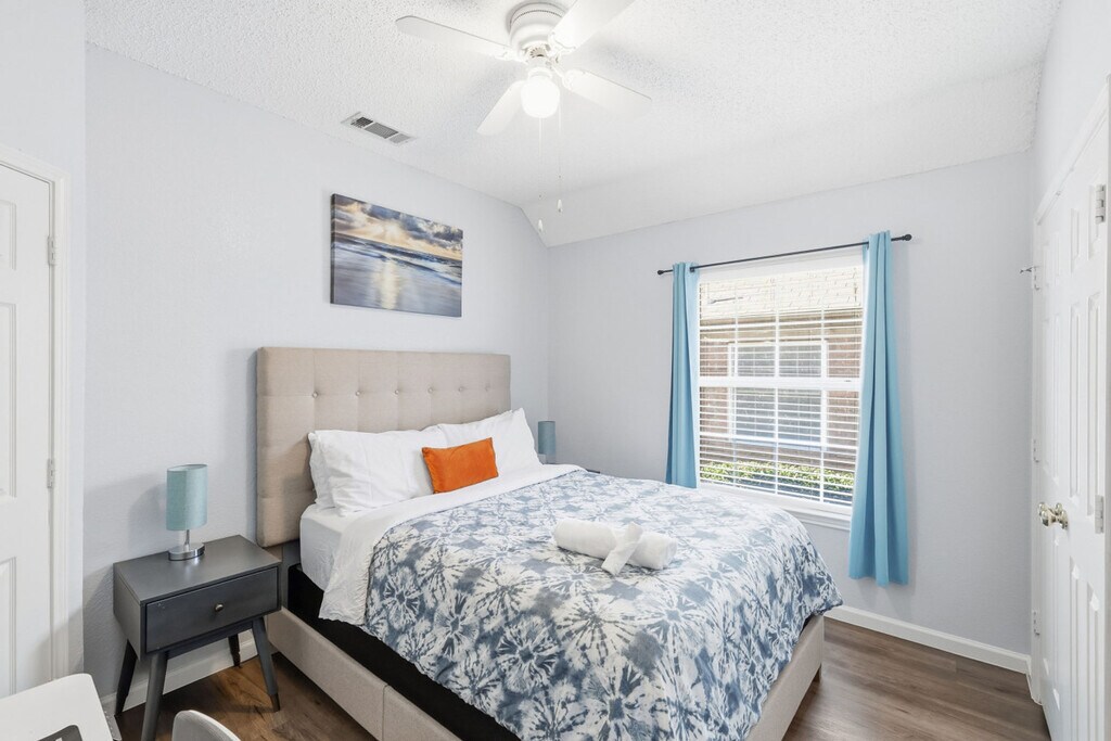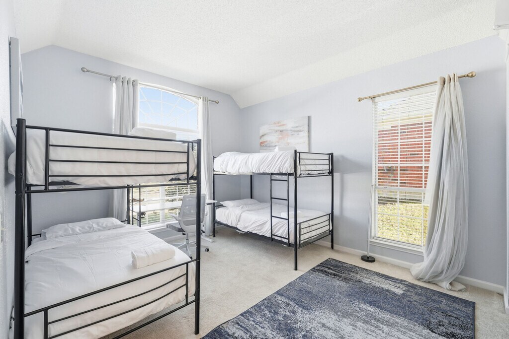 Feel at home in this beautiful, fully furnished Frisco home, offering 2,222 sq. ft. of elegant and comfortable living. This home accommodates up to 16 guests and features two spacious living rooms with two sofa beds, a fully equipped kitchen, high-speed Wi-Fi, smart TVs, and a movie room. The fully stocked kitchen includes a fridge, stove, oven, set of 4 pots, complete cutlery set, coffee maker, kettle, rice cooker, cutting board, coffee cups, small glasses, frying pans, and plates. A garage is available for parking, and two cars can fit in the driveway. Additional street parking is available in front of the house. Pets are welcome with an extra one-time fee per pet per stay: 1-2 nights: $100/pet, 3-6 nights: $150/pet, 7-29 nights: $250/pet, 30+ nights: $300/month/pet. No pets over 50lbs. Located in a quiet and safe neighborhood, this home is close to parks and family-friendly activities, with easy access to main roads for smooth commuting. Enjoy the large backyard, perfect for relaxing. Smoking, drug, and vape use is not allowed inside the unit, on the balcony, or in the hallways of the building. There is a $1000 fine if discovered or reported. Quiet hours are strictly observed from 10pm to 8am, and parties are not allowed in this property, including loud music. There is a fee of $1000 if a party is discovered or if a neighbor complains of excessive noise. If an excessive mess is discovered after your stay, you will be charged accordingly on top of the standard cleaning fee. You will be charged for stained or damaged sheets/towels. There is a $10 charge if face towels are stained. You will be charged for any missing or damaged items. There is a $600 penalty for lost keys/clicker/fob. Do not alter any safety device. There is 1 security camera pointing at the door entrance. Blocking or disconnecting this device will lead to immediate termination of your stay with no refund. $600 penalty for lost or damaged key/ fob / parking permit. $500 penalty if you’re locked out and will need someone to assist you. [SI]