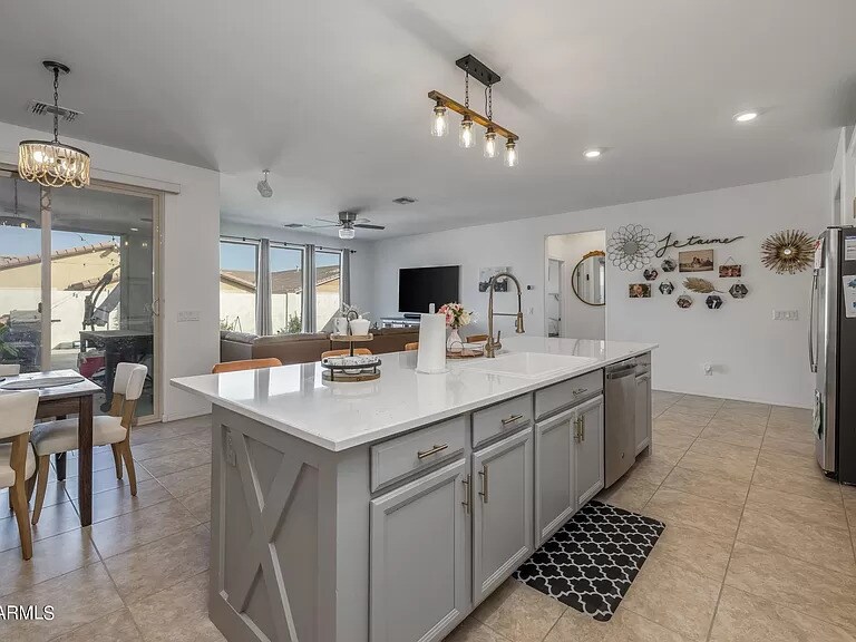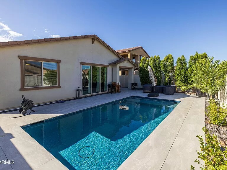 Introducing the gem of the award-winning Eastmark Master Planned Community! This breathtaking 4-bedroom, 3-bath single-story home, crafted by William Ryan Homes in 2020, spans 2196 sq ft of lavish living space. Revel in the magnificent split floor plan, showcasing a grand Chef's kitchen with quartz countertops, stainless steel appliances, a walk-in pantry, and an expansive island overseeing the inviting living and dining areas. Equipped with owned solar panels, relish in the modern amenities and prestige of Eastmark living. Complete with a private pool, this residence exudes elegance and comfort. Seize the opportunity to indulge in the epitome of Eastmark living! Utilities included as listed above.