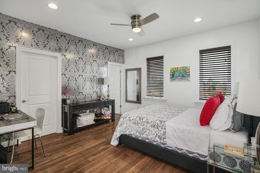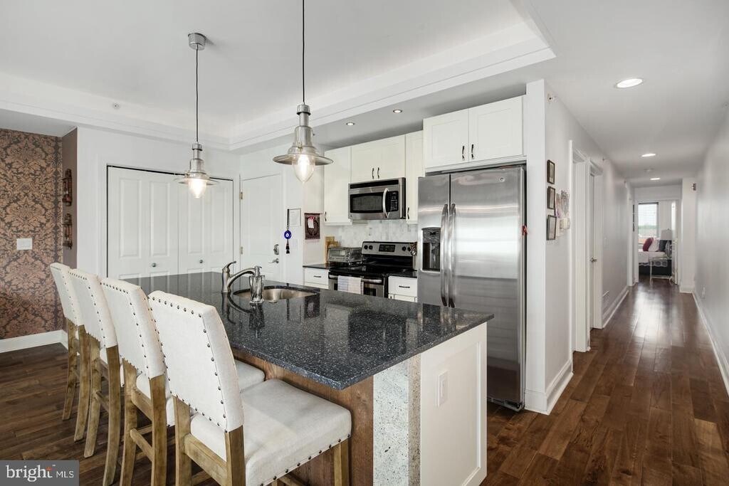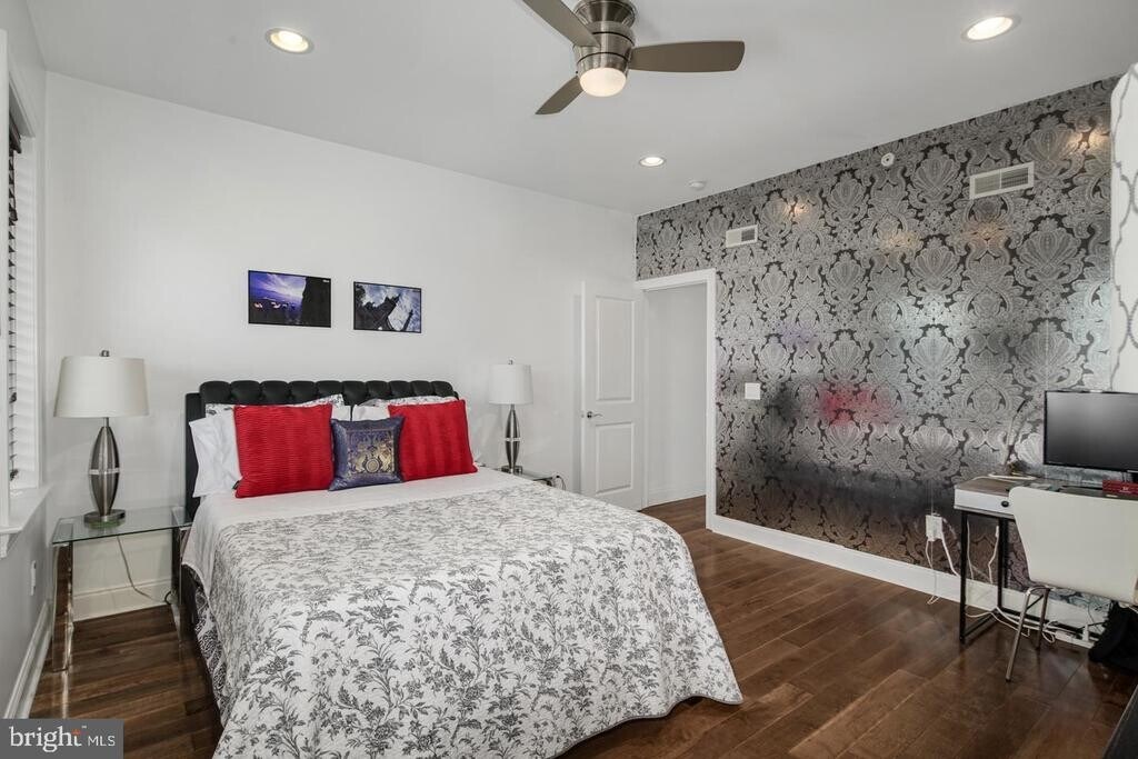 Beautifully maintained condo in Poplar. This home features assigned indoor parking and a private balcony that extends from the spacious living and dining area. Upgrades include a new Wi-Fi–enabled washer and dryer and an energy-efficient HVAC system installed in 2021. Throughout the home, you’ll find custom closets and hardwood floors. The custom wallpaper was designed specifically for the current owner but can be easily removed if preferred. The unit offers two generously sized bedroom suites, each with a well-appointed full bath, plus an additional half bath in the hallway. The updated kitchen provides ample cabinet space and a large countertop. Conveniently located near Broad Street and Fairmount, the property provides easy access to neighborhood amenities, Center City, and an Aldi within walking distance. Tenant Pays: Electricity, Water. Pet Fees: $250 non-refundable pet fee. Move-In Costs: First Month and Two Security Deposits. Application Fee: $45.50 per applicant. Additional Information: Covered Garage Parking. One assigned spot. One month free on 18 month lease.