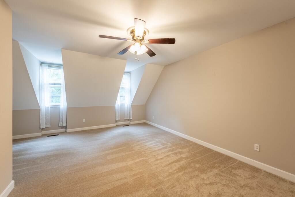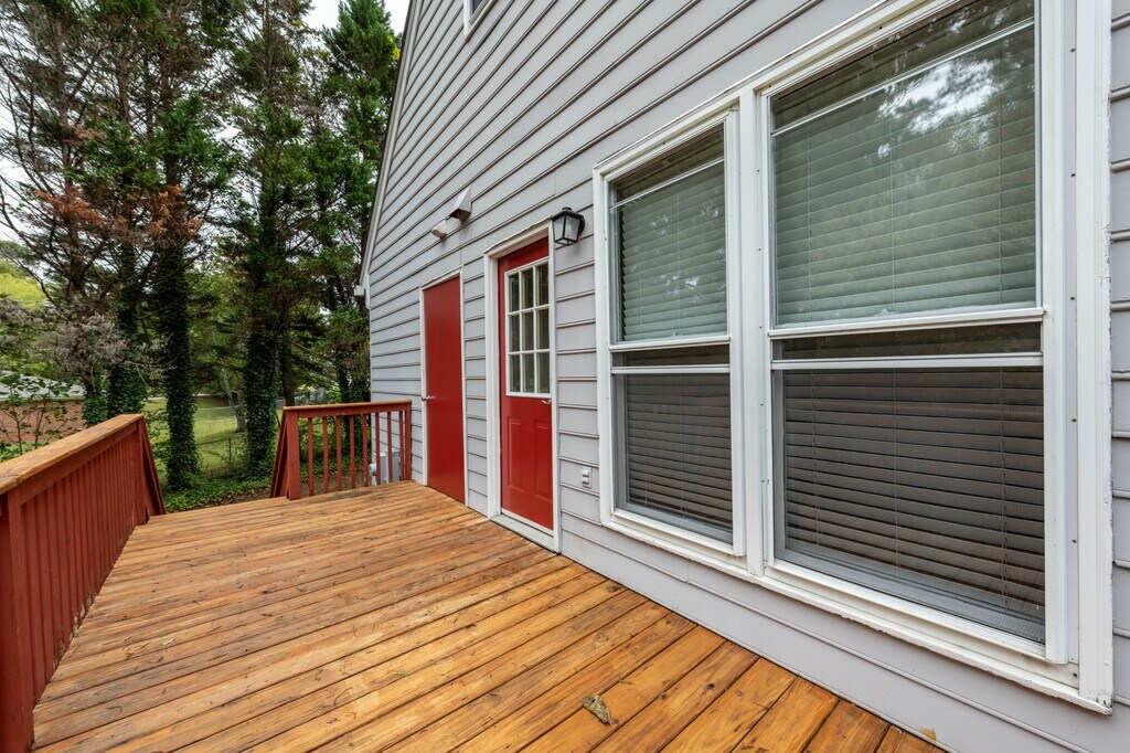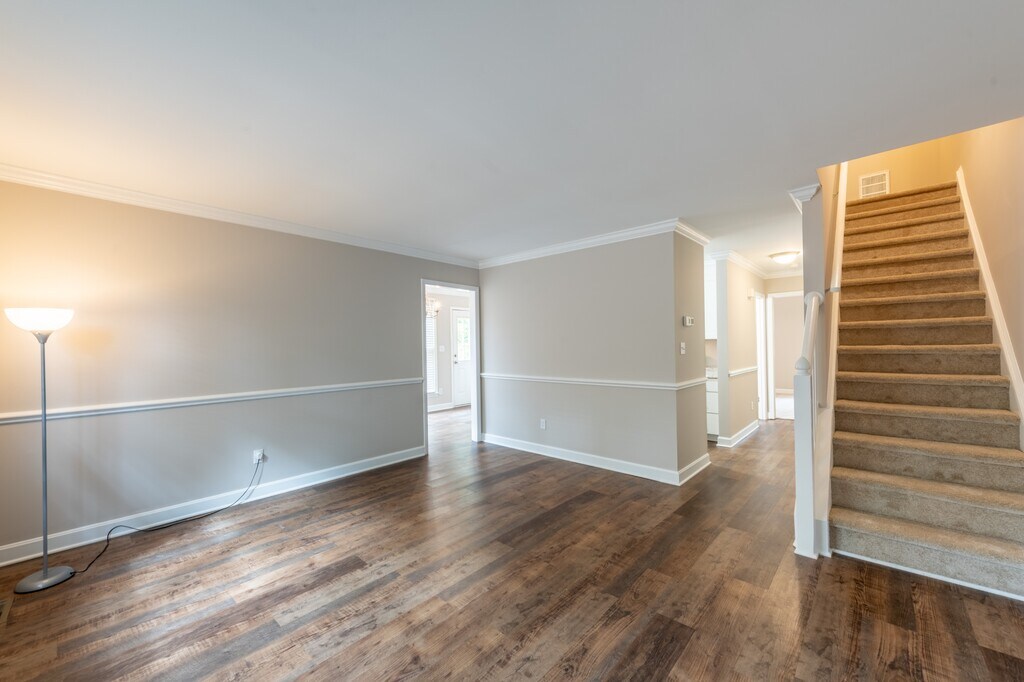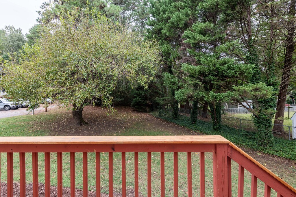 End unit townhome with 2 bedrooms, 2 full baths. 1 bedroom on first floor, oversized deck overlooking large grassy common area, separate dining room, 2assigned parking spaces. Super convenient Wake Forest location close to downtown, walking distance to Lidl and so much more. View 360 tour at